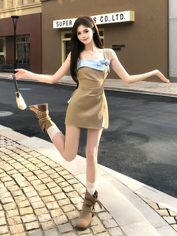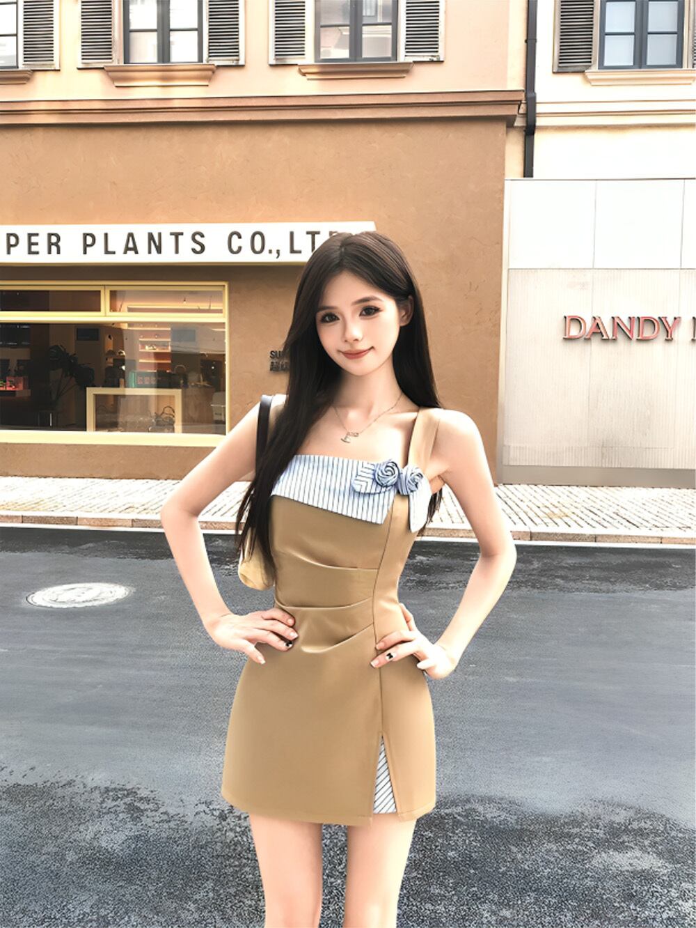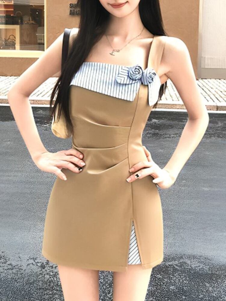 これぞお洒落の代名詞というフレーズがぴったりな「ブルーストライプフラワードッキングカーキキャミソールワンピース」をお楽しみください♡