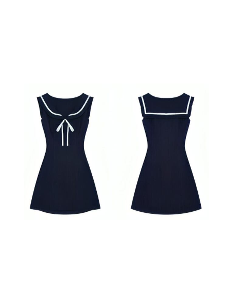 デートやお出かけにもぴったりな「セーラースタイルホワイトラインフロントコードノースリーブワンピース」をお楽しみください♡