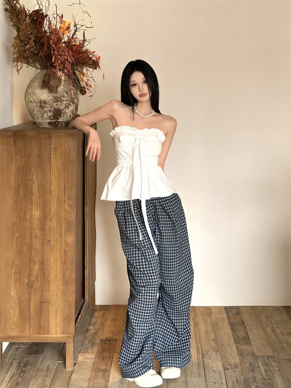 ロングコードチューブトップ&リッチネイビーアイビールックパンツ