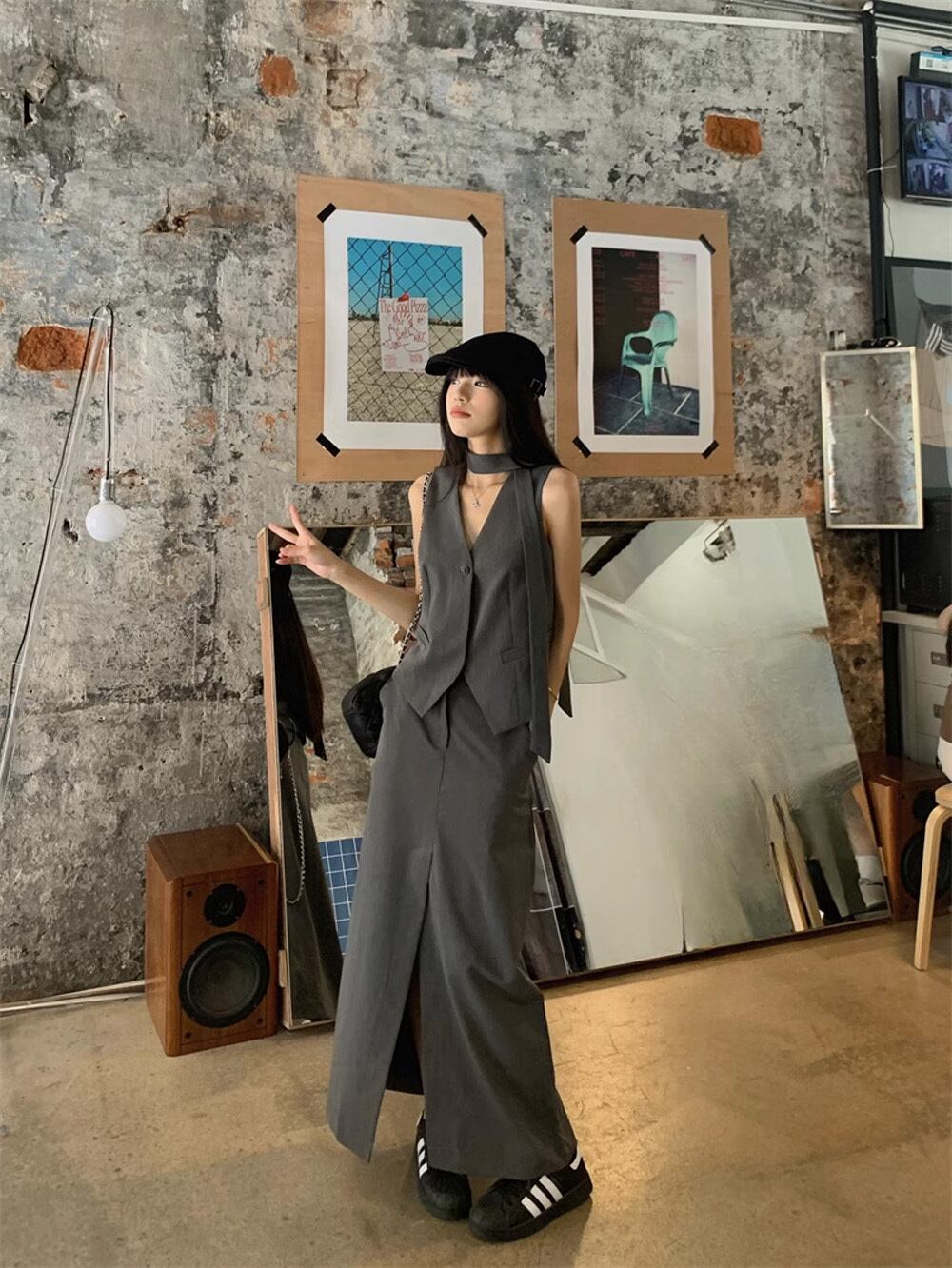 即日発送 アウトレット|トレンドY2Kスタイルチョーカーベストセットアップ