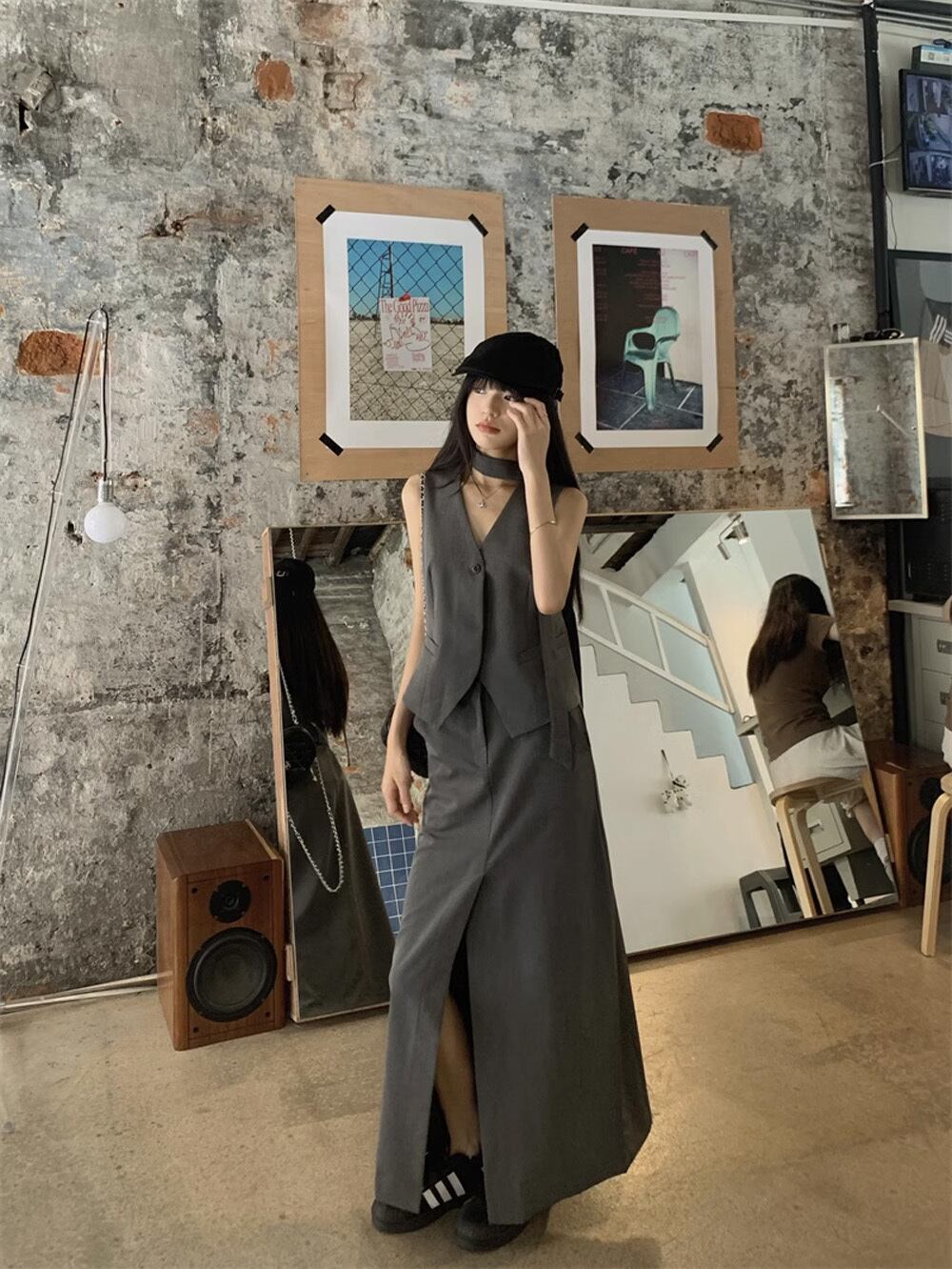 トレンドY2Kスタイルチョーカーベストセットアップが新登場!ヴィンテージ感漂うリブ素材のチョーカーベストとマッチするスカート。トレンド感たっぷりのY2Kスタイルを取り入れたコーディネートが簡単に完成します。