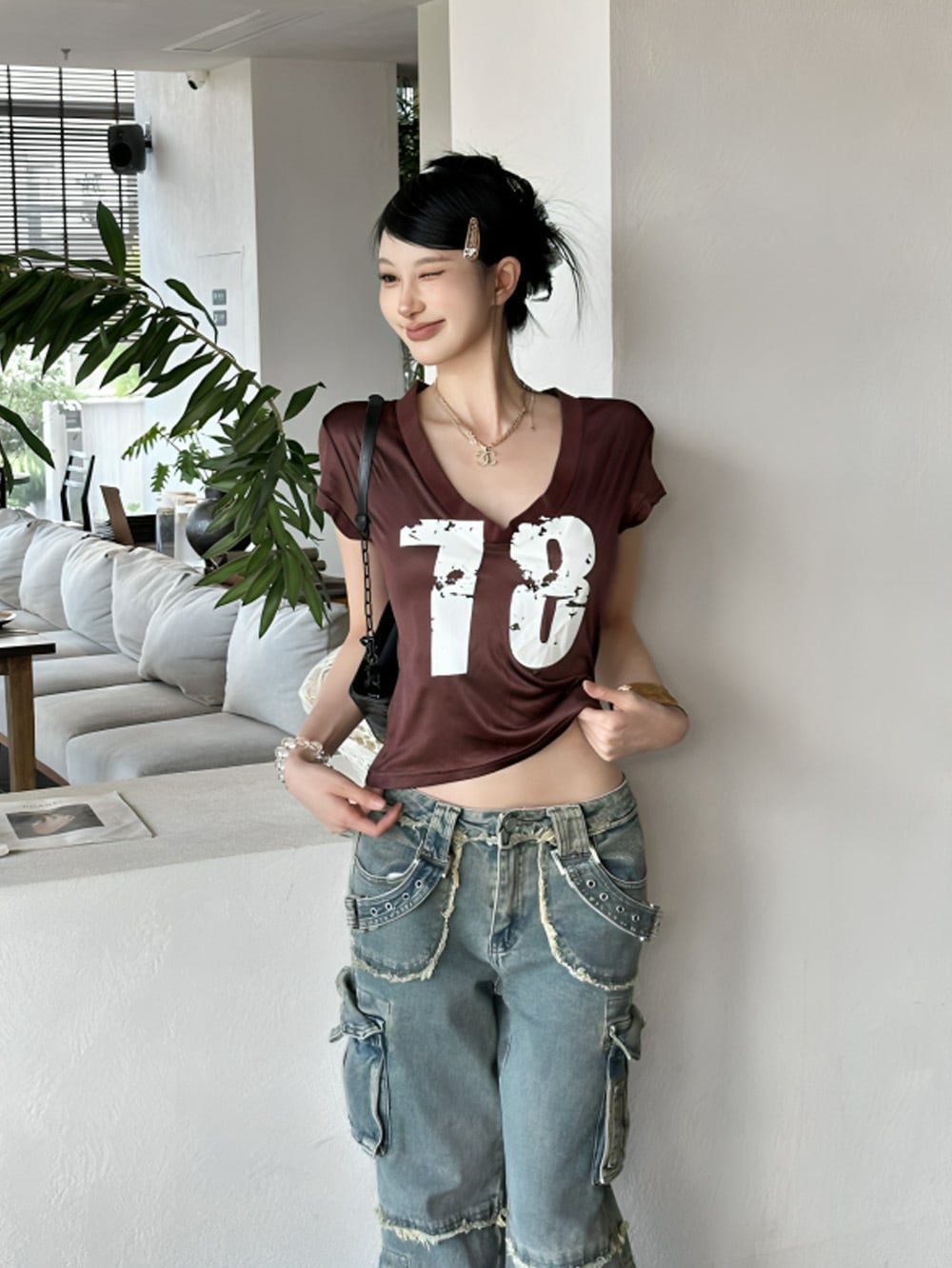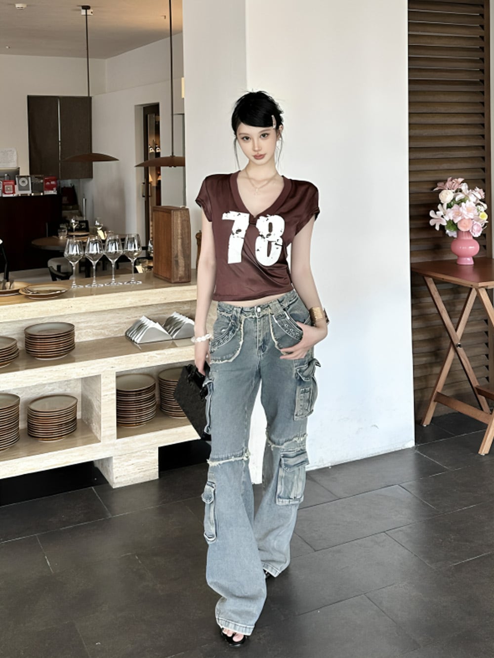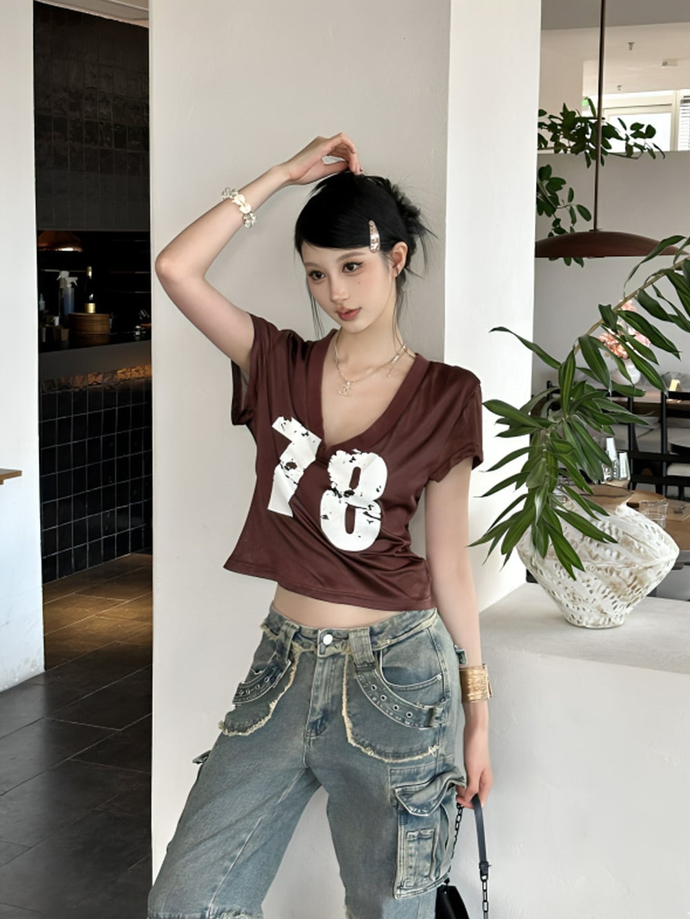 #Y2K|78ブラッシングナンバーVネックトップスは、視線を集める都会派スポーティスタイルがアイコニックなアイテム。