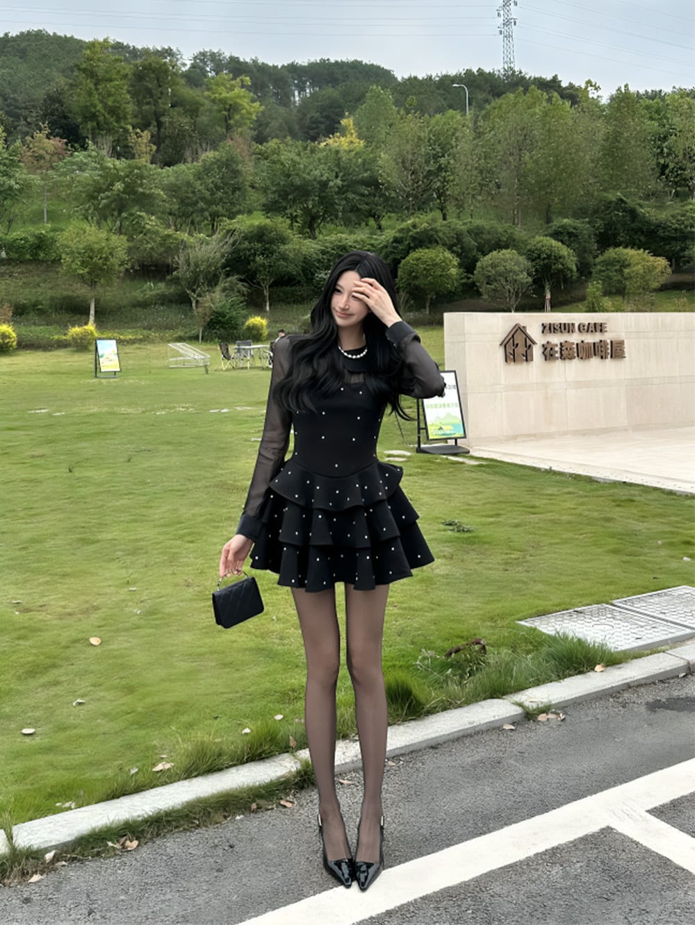 足元から気分があがるような「メッシュシースルースリーブビジュードットレイヤリングワンピース」をお楽しみください♡