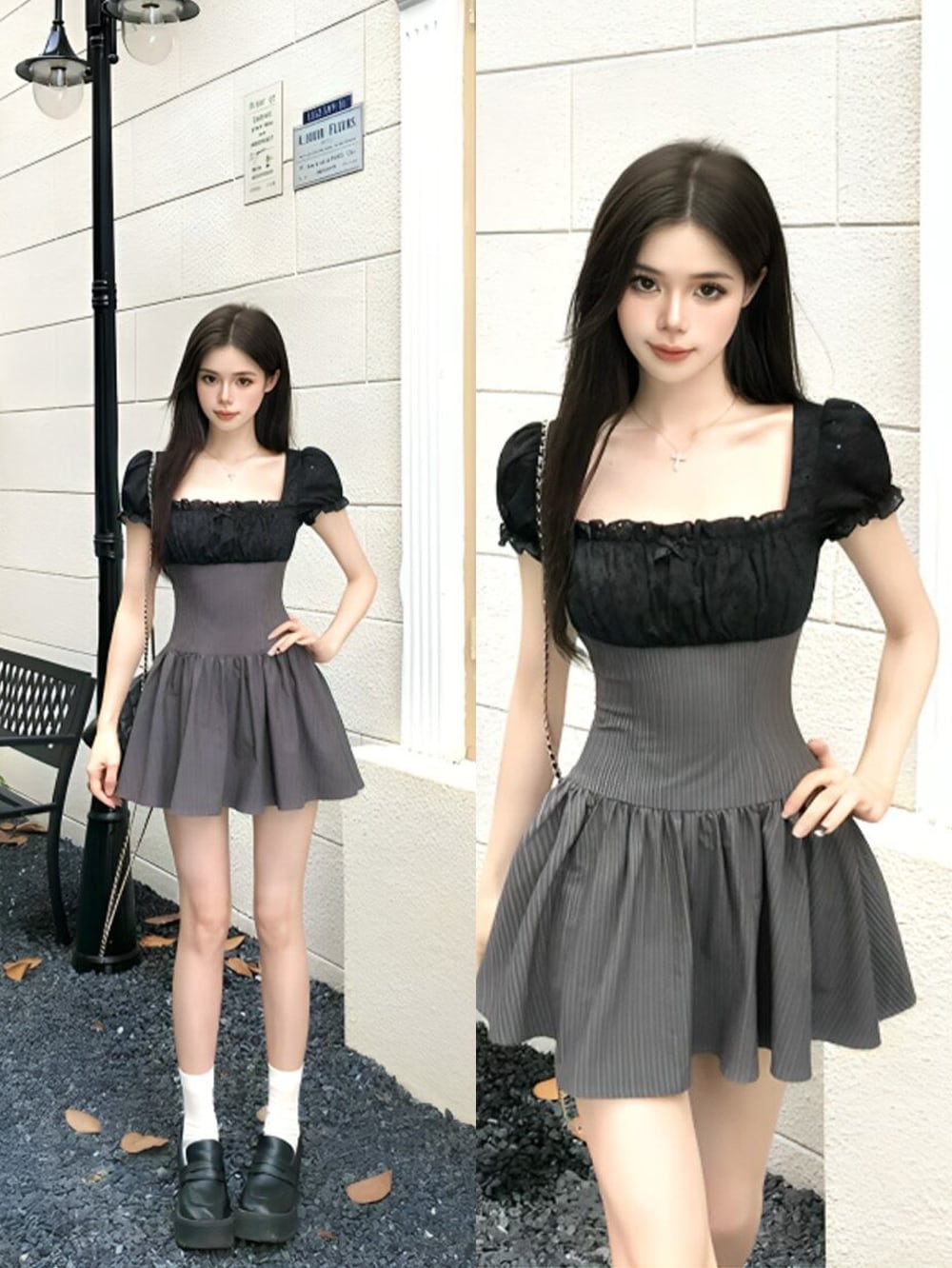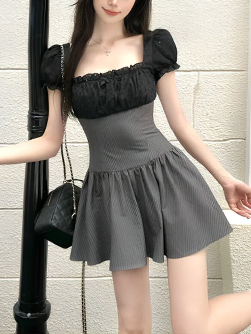 大人っぽさとガーリーのバランスが絶妙な「#大人可愛い|ダブルファブリックアセンブルスクエアネックミニワンピース」をお楽しみください♡
