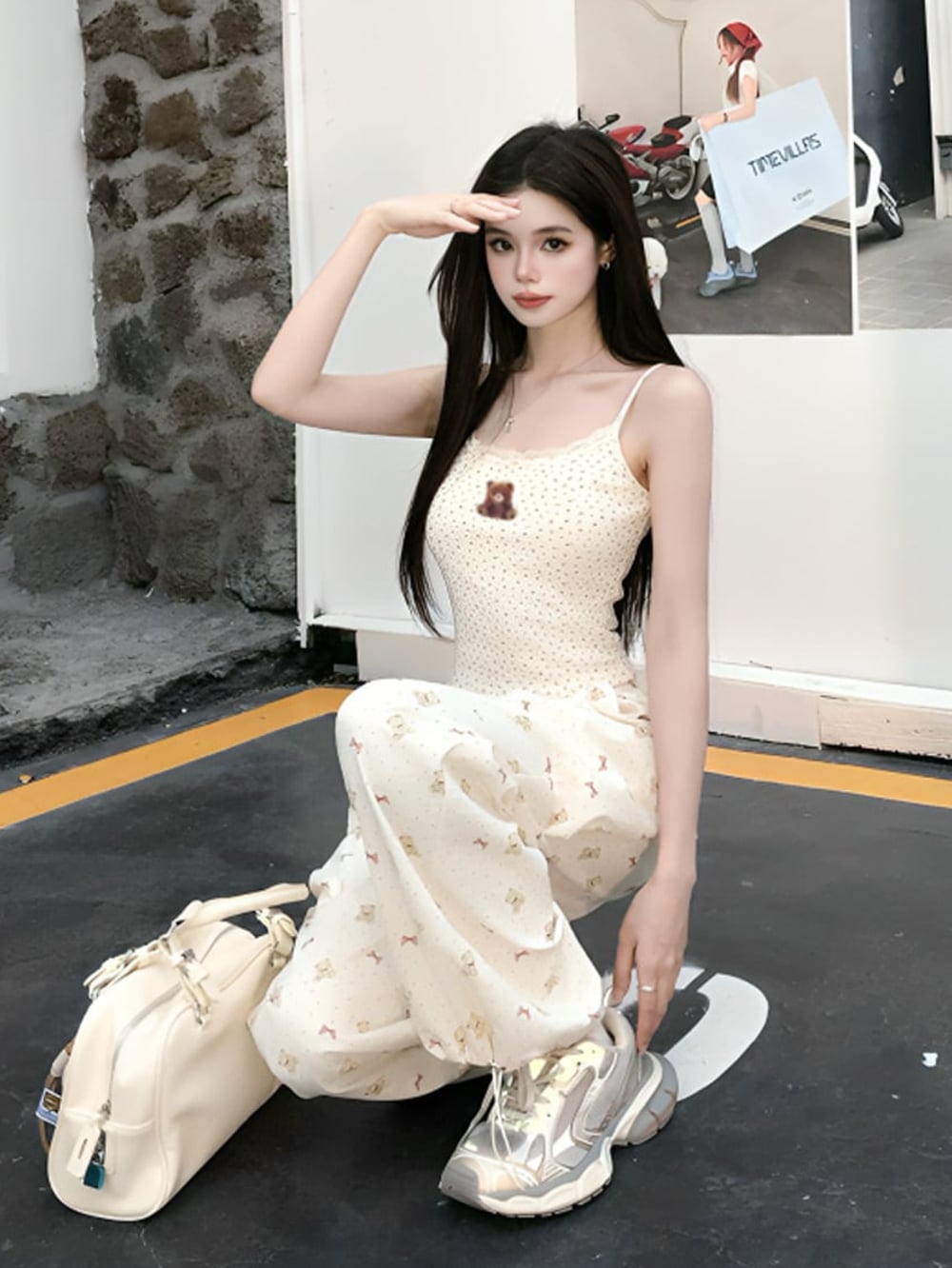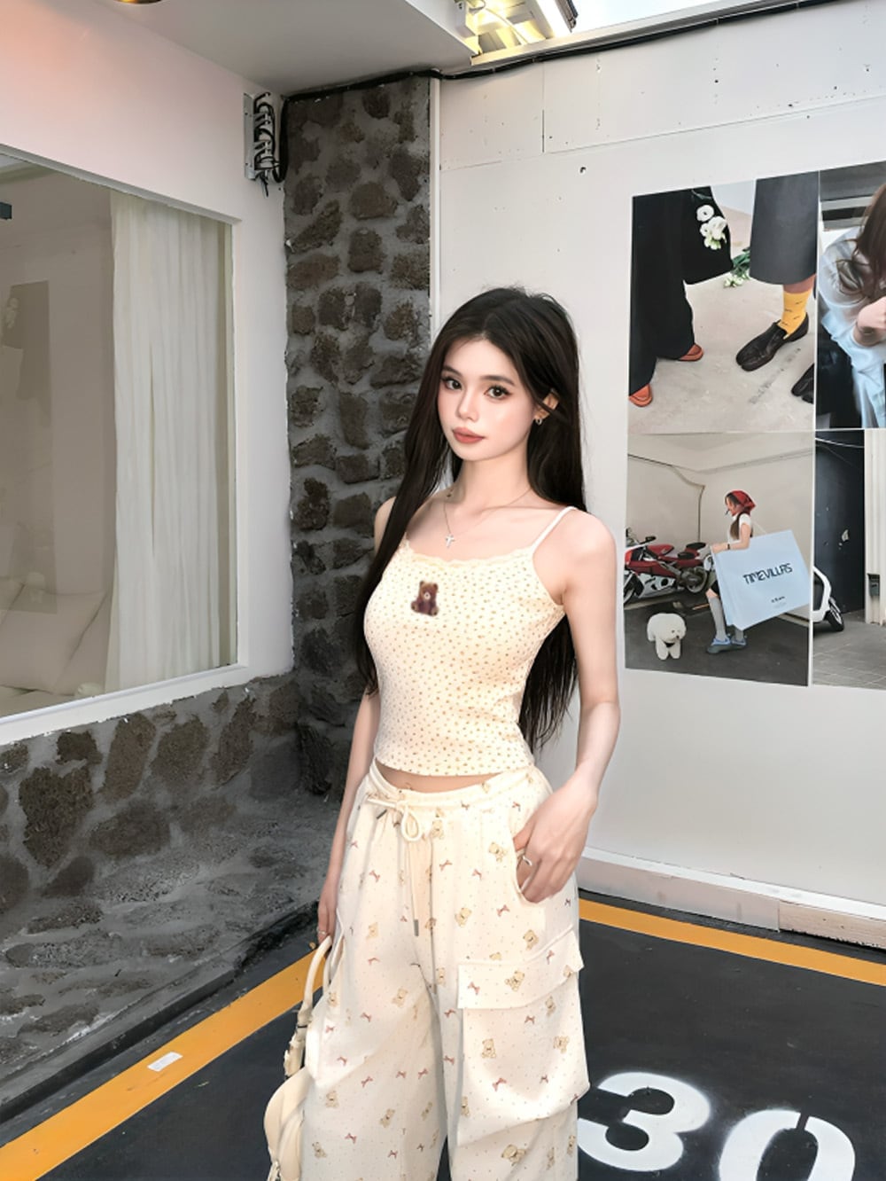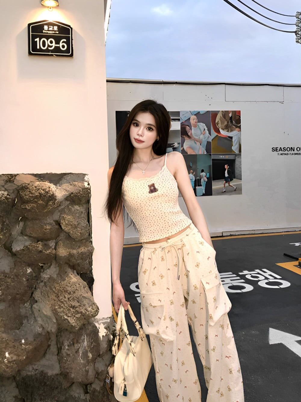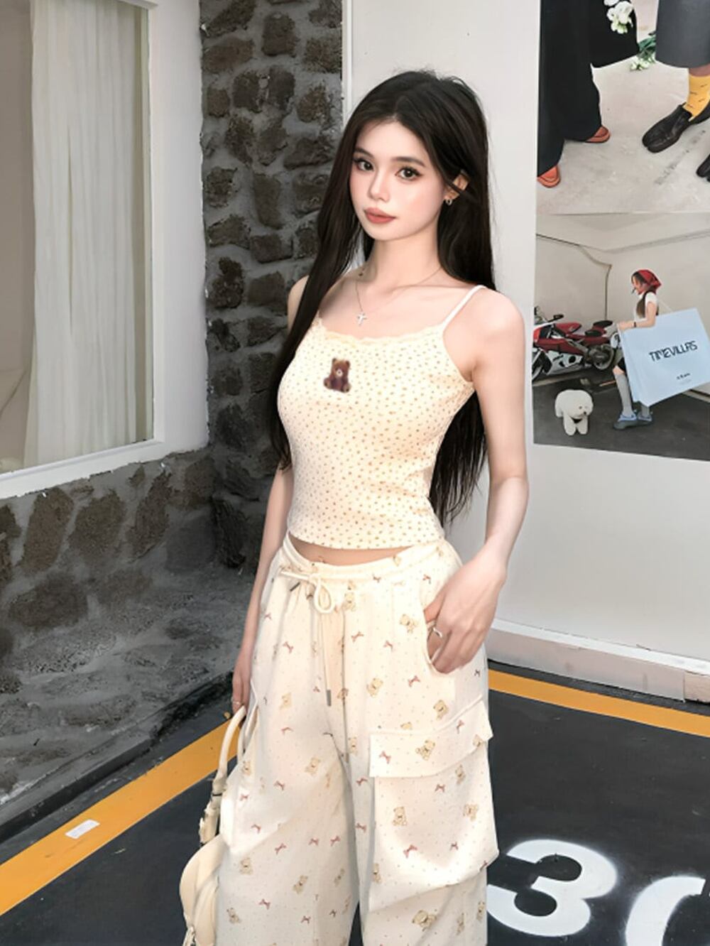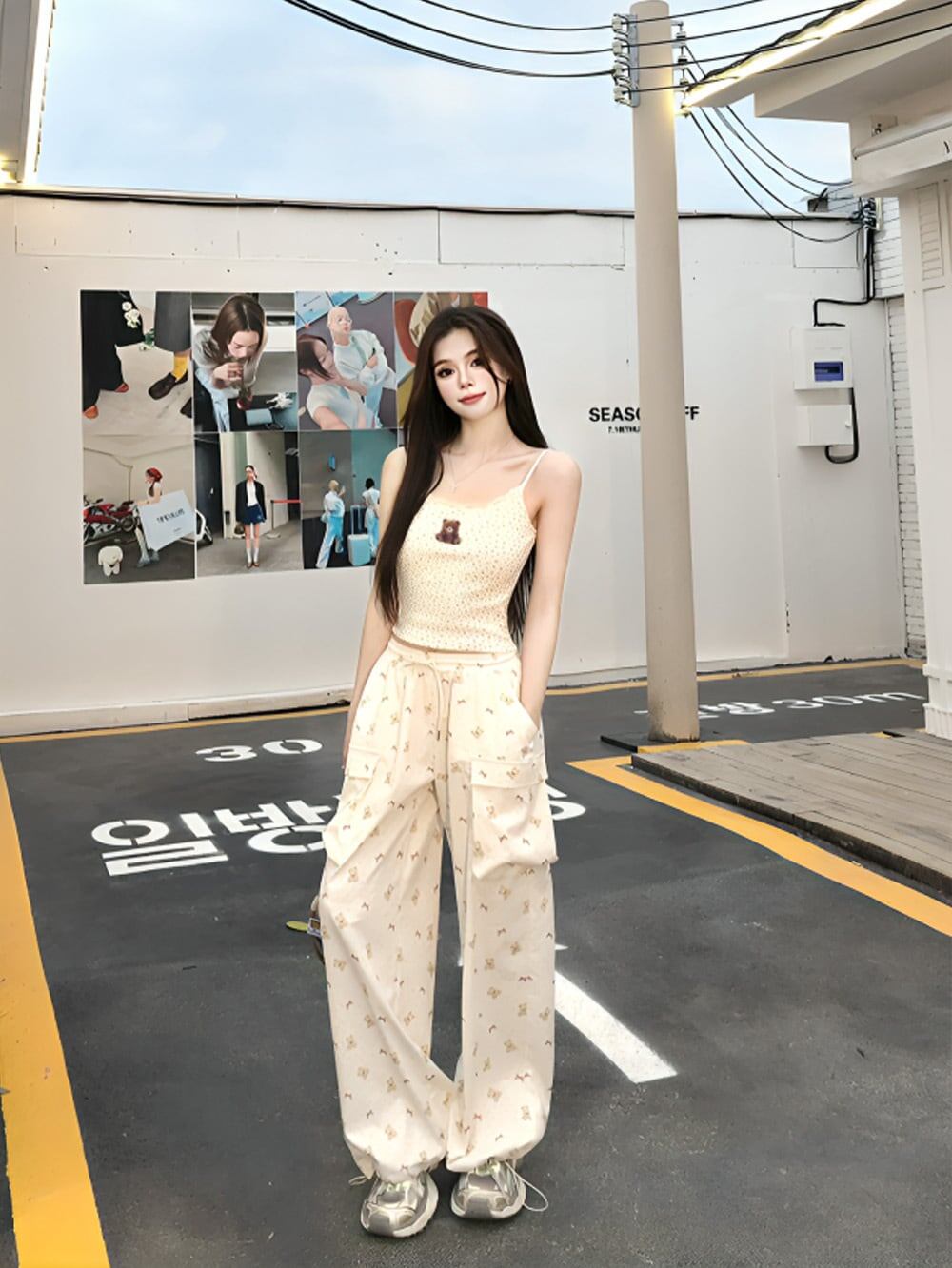 「ベアーステッチフラワーモノグラムキャミソール+ベアーリボンモノグラムパンツセットアップ」で特別な瞬間を♡