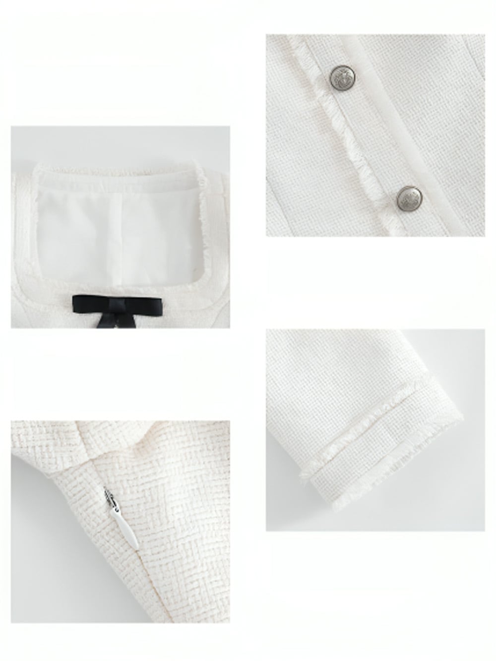 ベルトアタッチホワイトツイードモチーフリムーバブルリボンワンピース|WAHJU