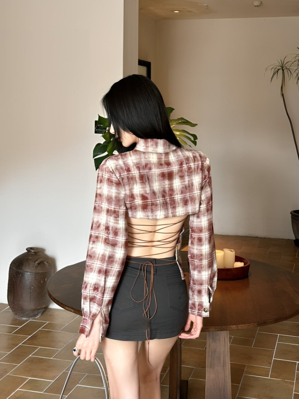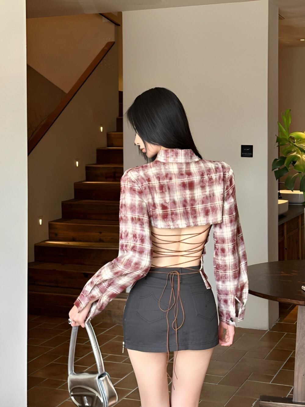 後姿までお洒落な「グランスチェックバックスリットロングシャツ」をお楽しみください♡