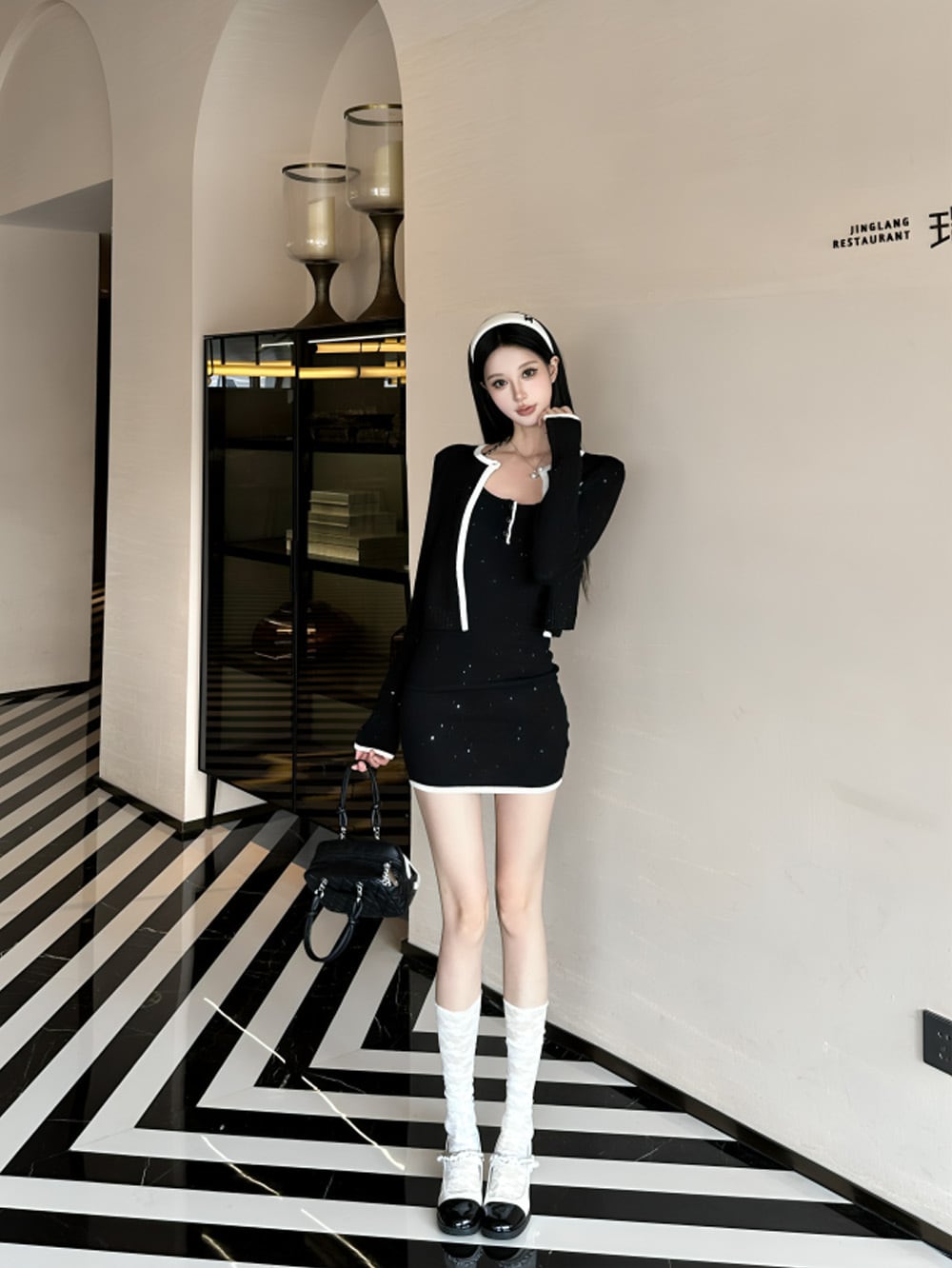 異なるスタイルを1セットで叶える「スパンコールジャケット+レザーチェーンキャミソールワンピースセットアップ」をお楽しみください♡