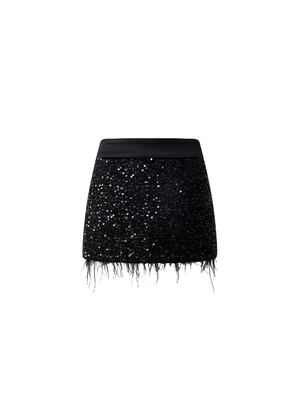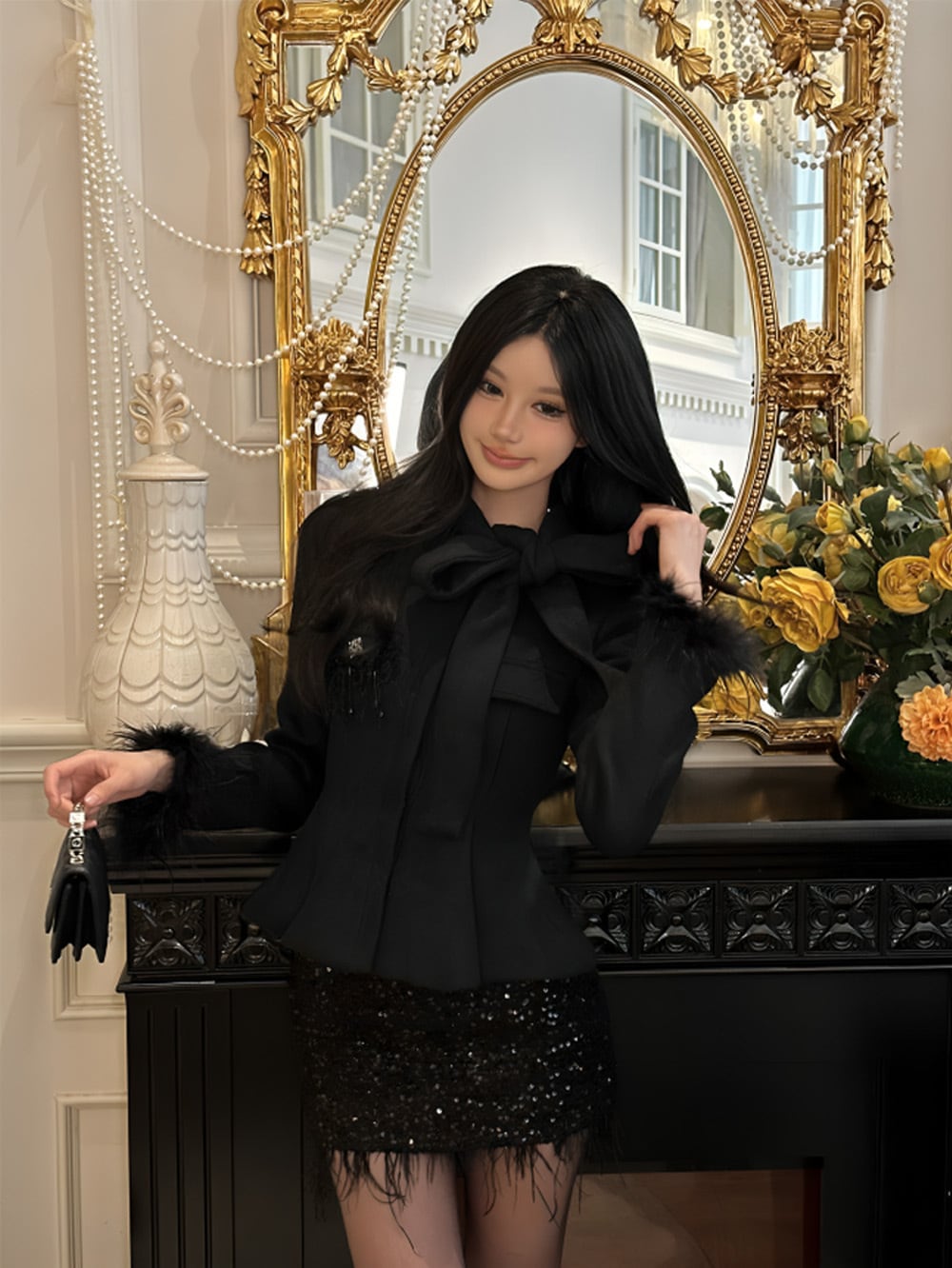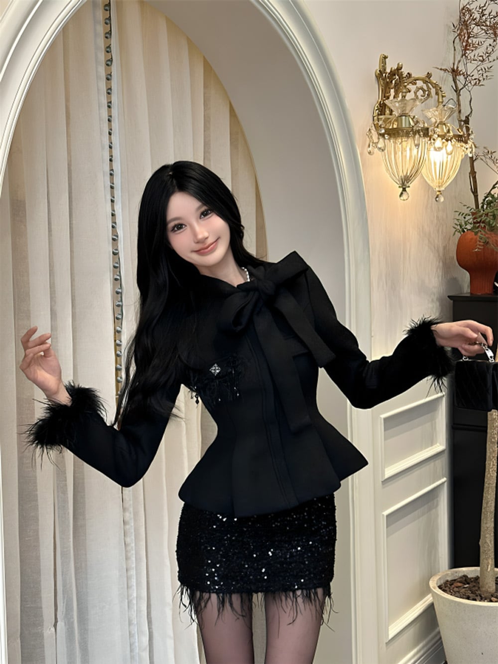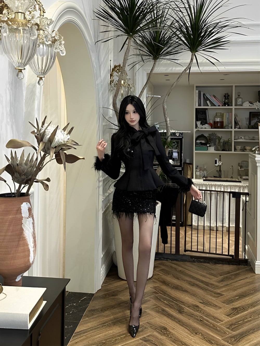 #財閥千金穿搭|ネックコードペプラムヘムフリンジ+スパンコールミニスカートセットアップ|Atelier Item