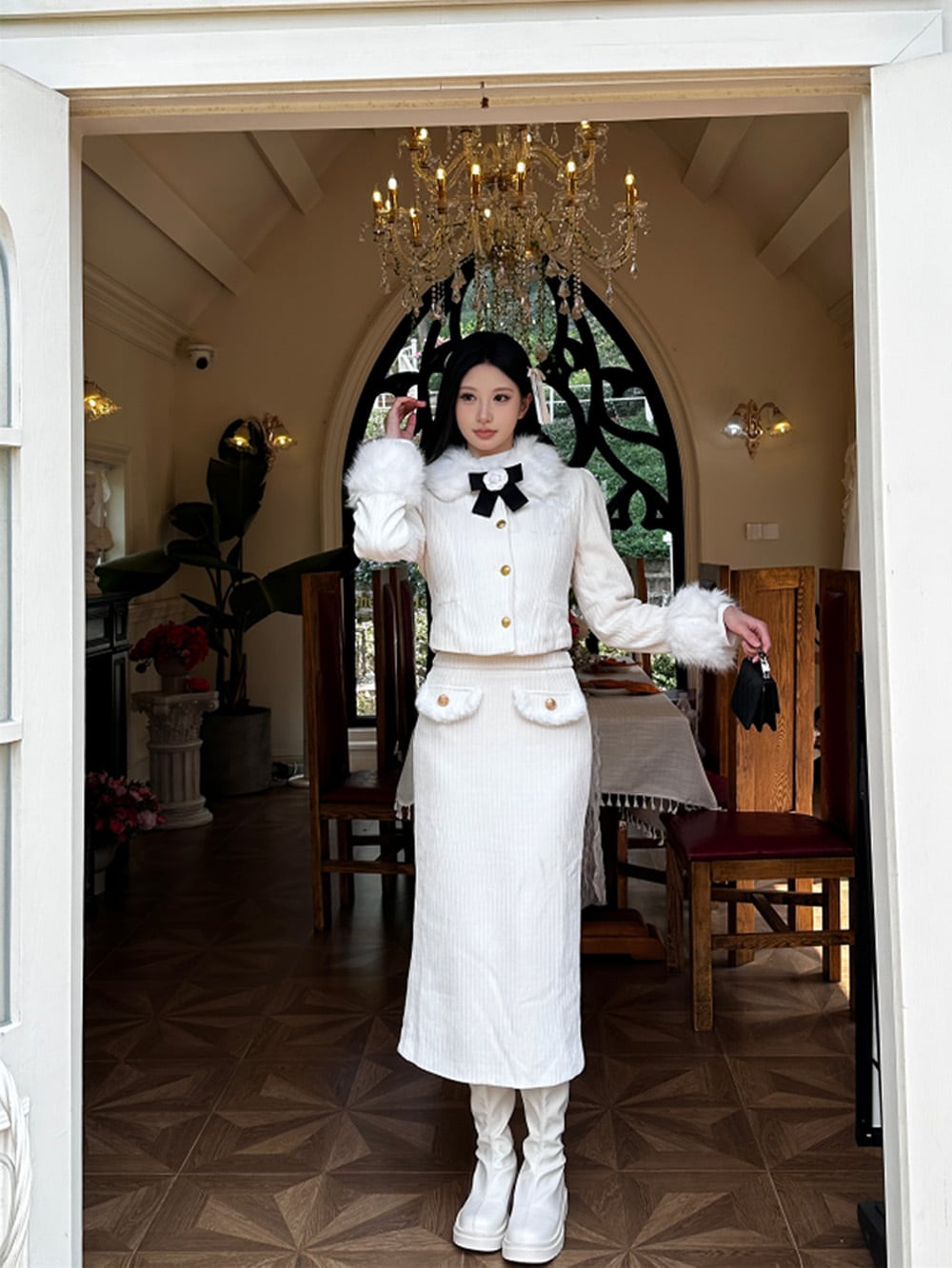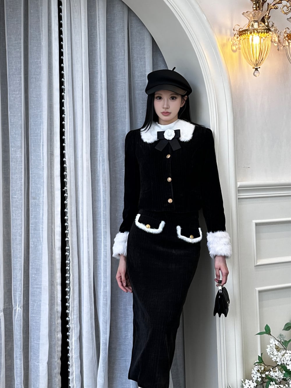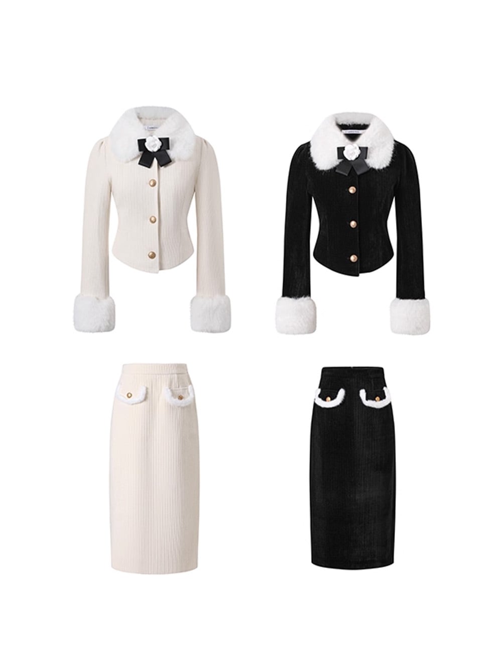 フロントカメリアファージャケット+ファーポケットロングスカートセットアップ|Atelier Item