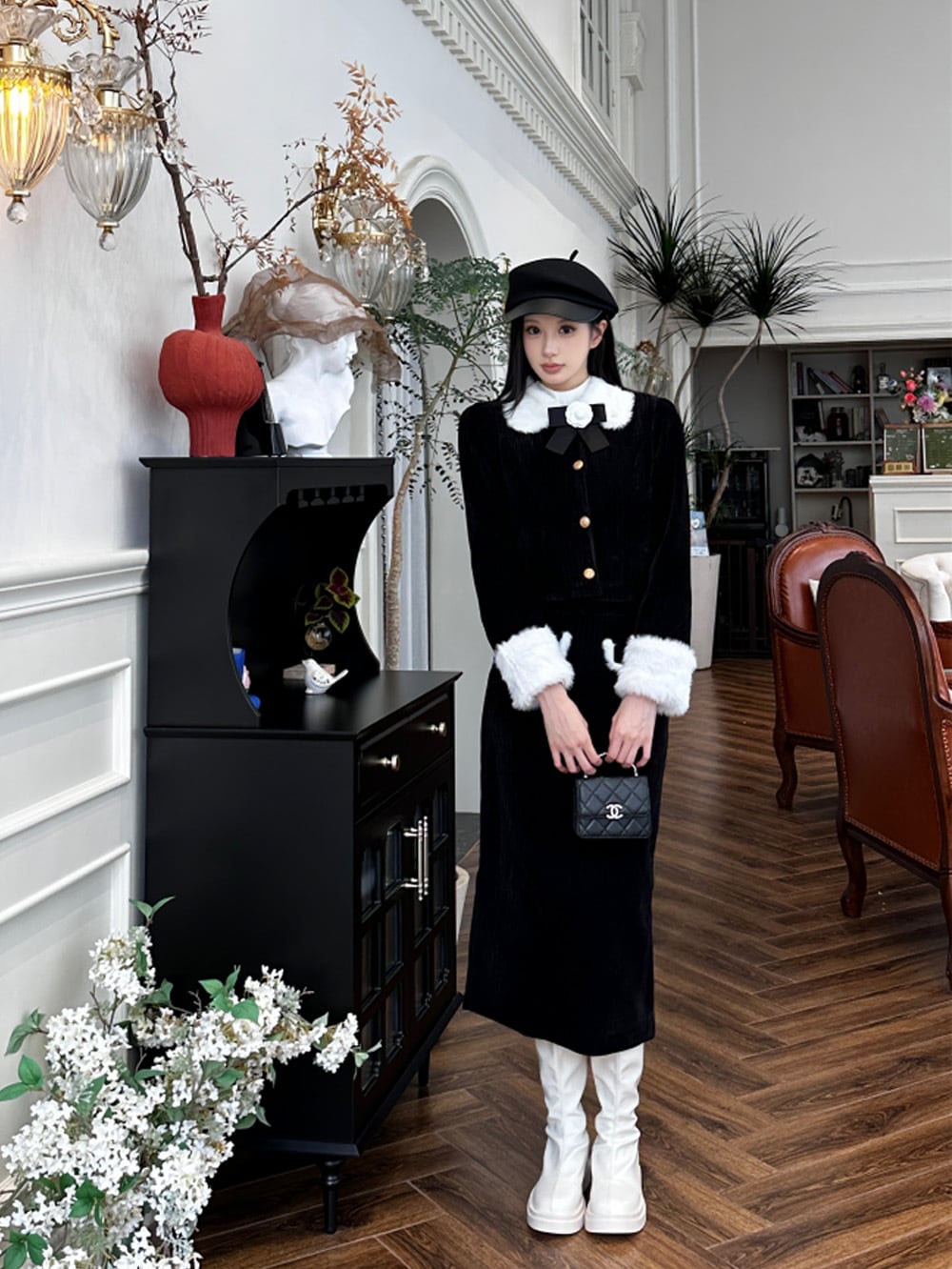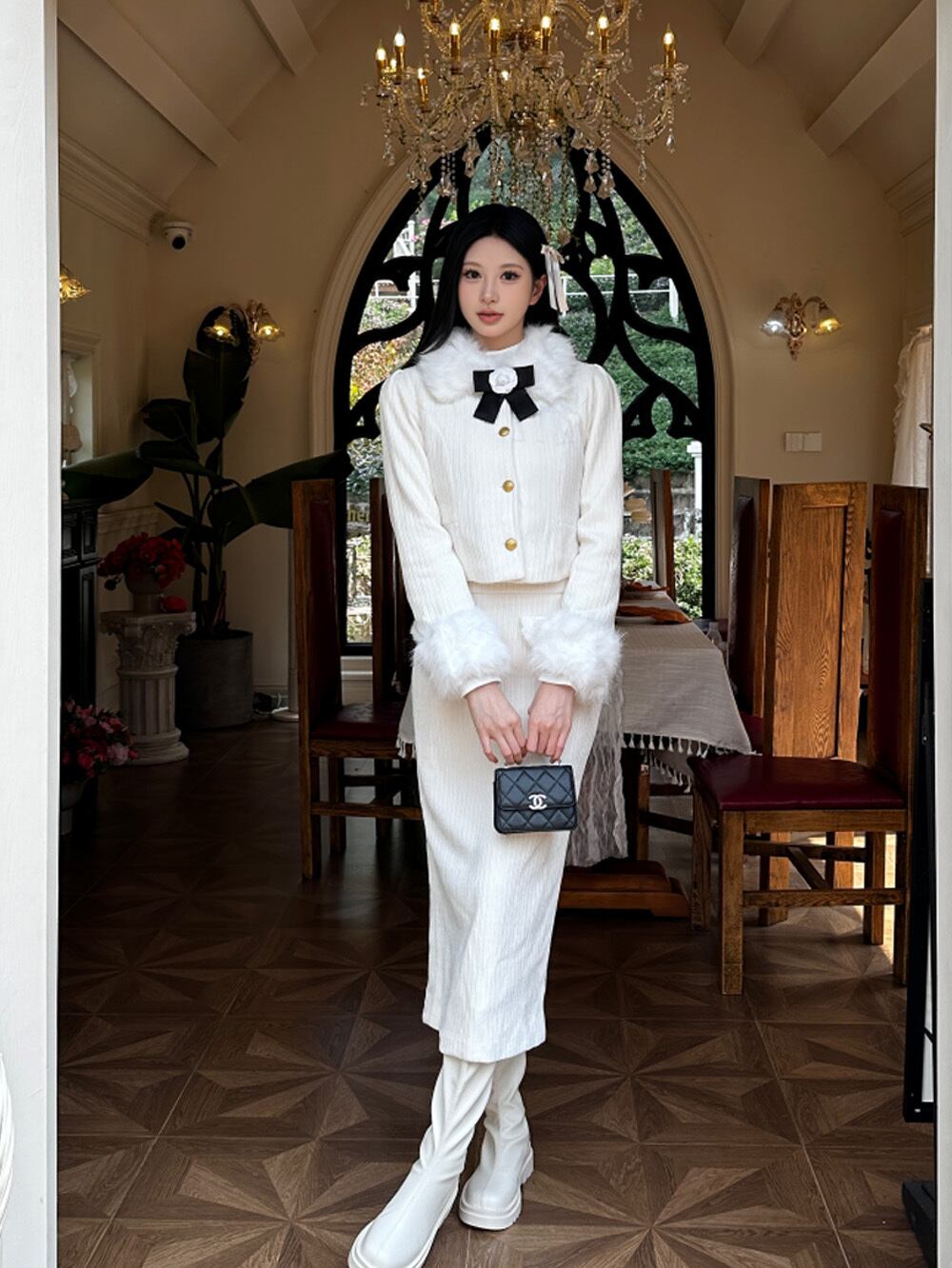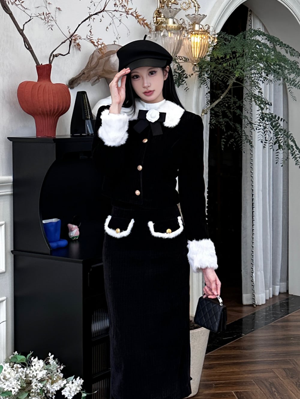 フロントカメリアファージャケット+ファーポケットロングスカートセットアップ|Atelier Item