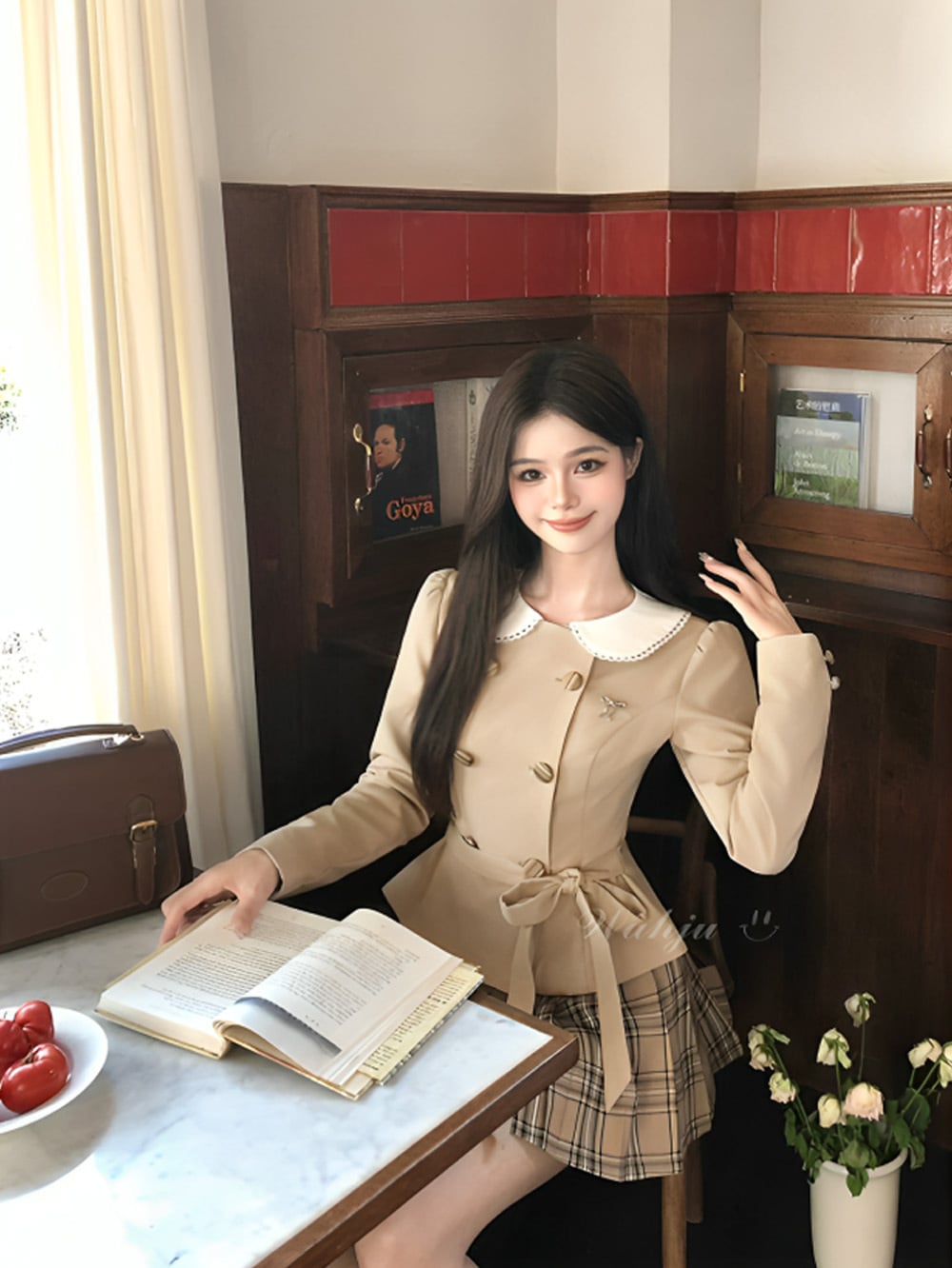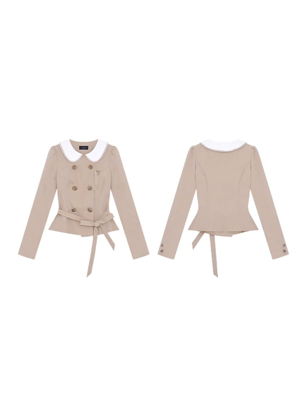 立体的なシルエットが、着こなしにクラシカルな品格をプラスする「ライトカーキペプラムウエストコードアウター」をお楽しみください♡