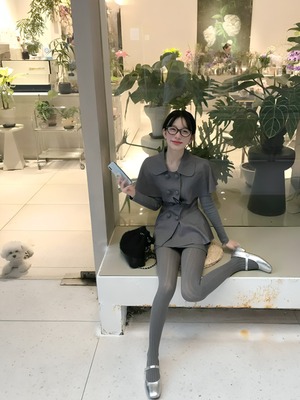 #miu系穿搭|ケープリッチグレーダブルボタンドレスアウター+ミニスカートセットアップは、スマートでクラシカルな美意識が詰まったコーディネートセット。