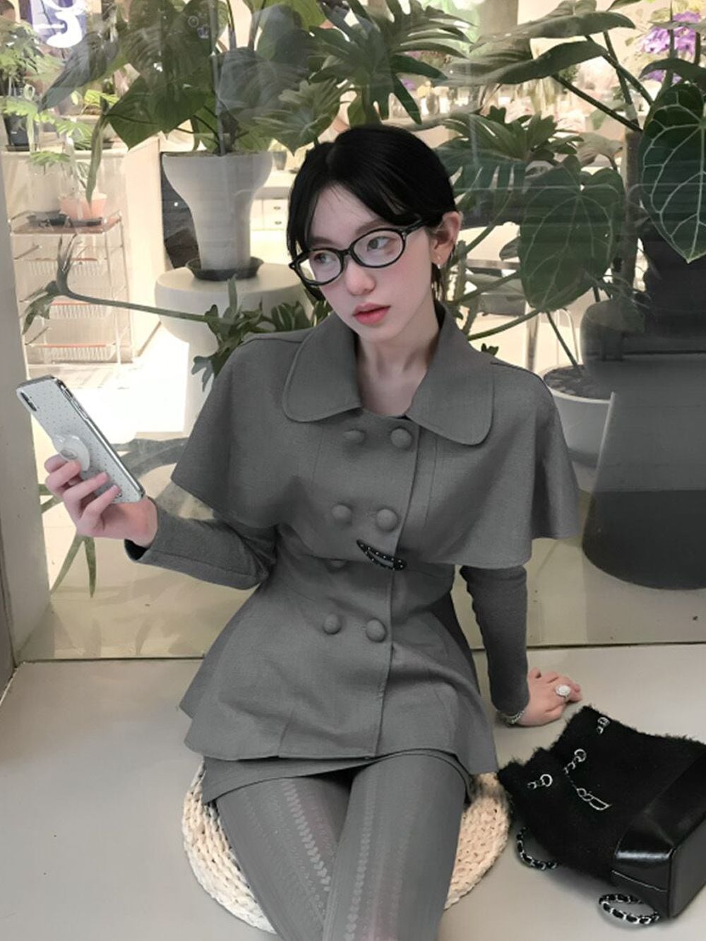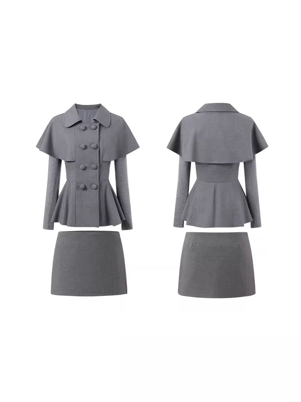 #miu系穿搭|ケープリッチグレーダブルボタンドレスアウター+ミニスカートセットアップ|Atelier Item