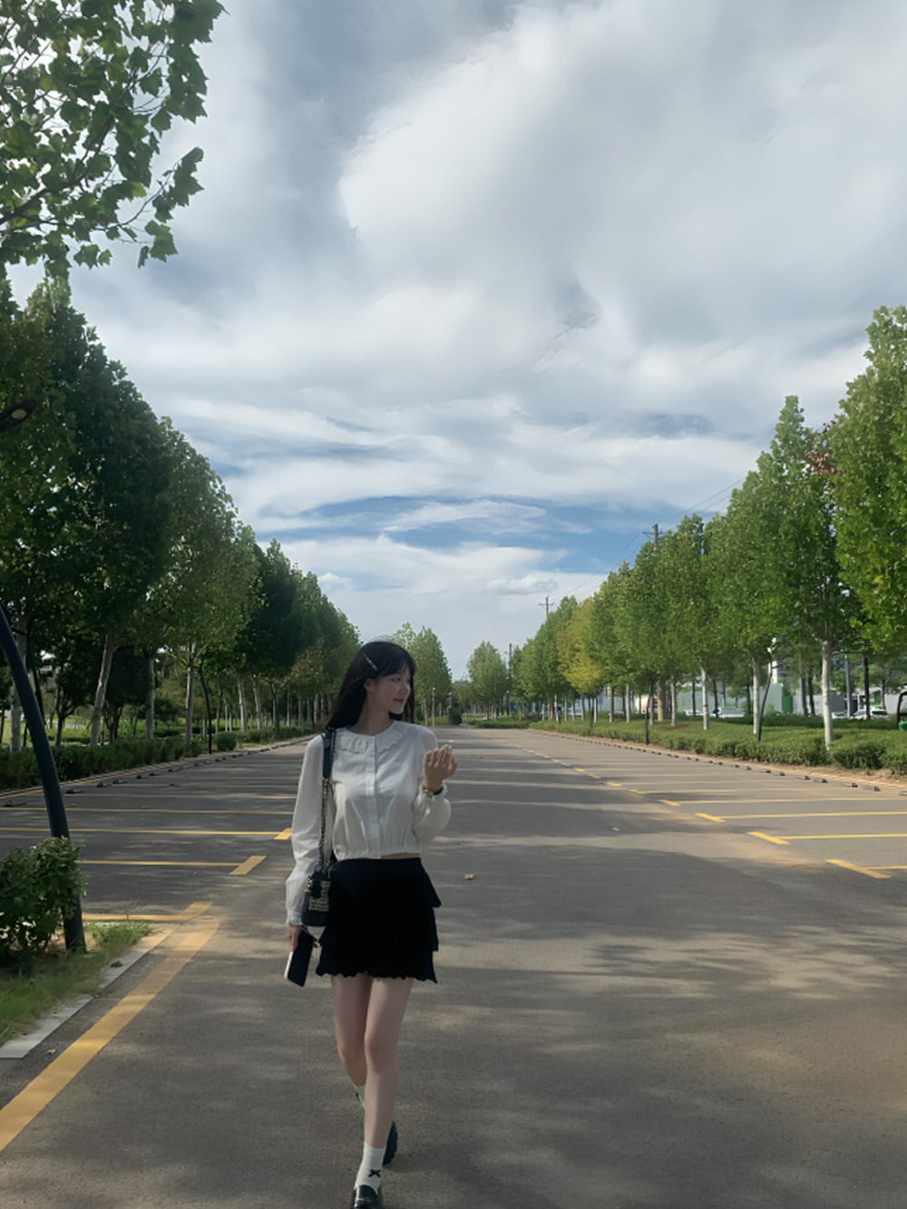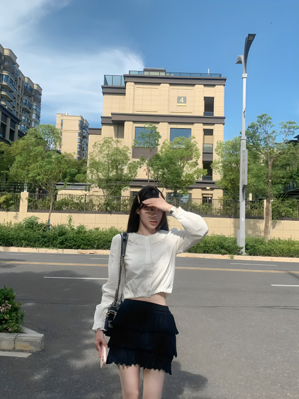 リブデザインスカラップレースフリルロングスリーブトップスは、清楚でロマンチックな魅力を最大限に引き出す、愛されブラウスアイテム。