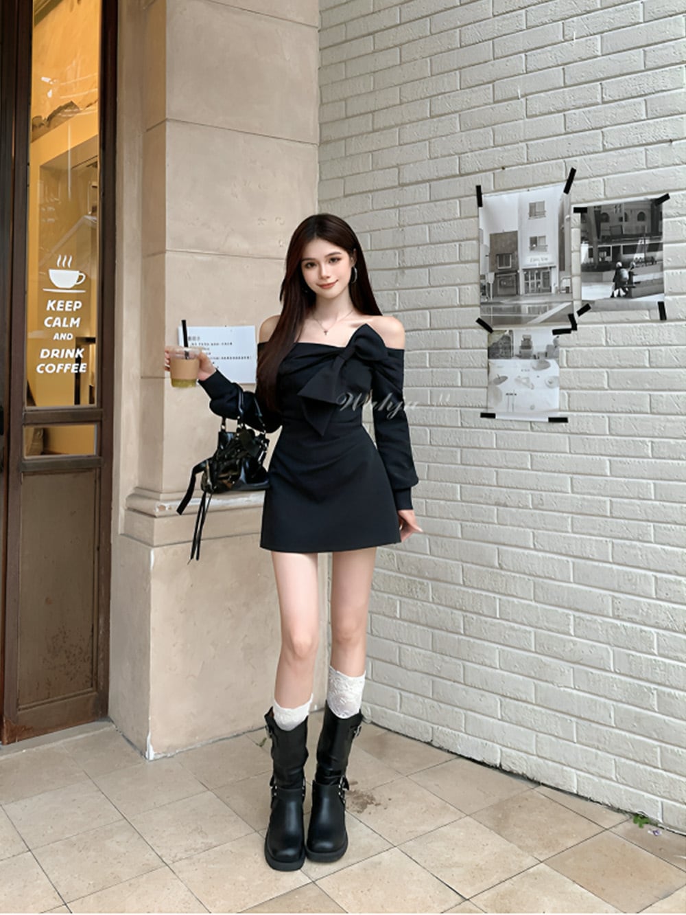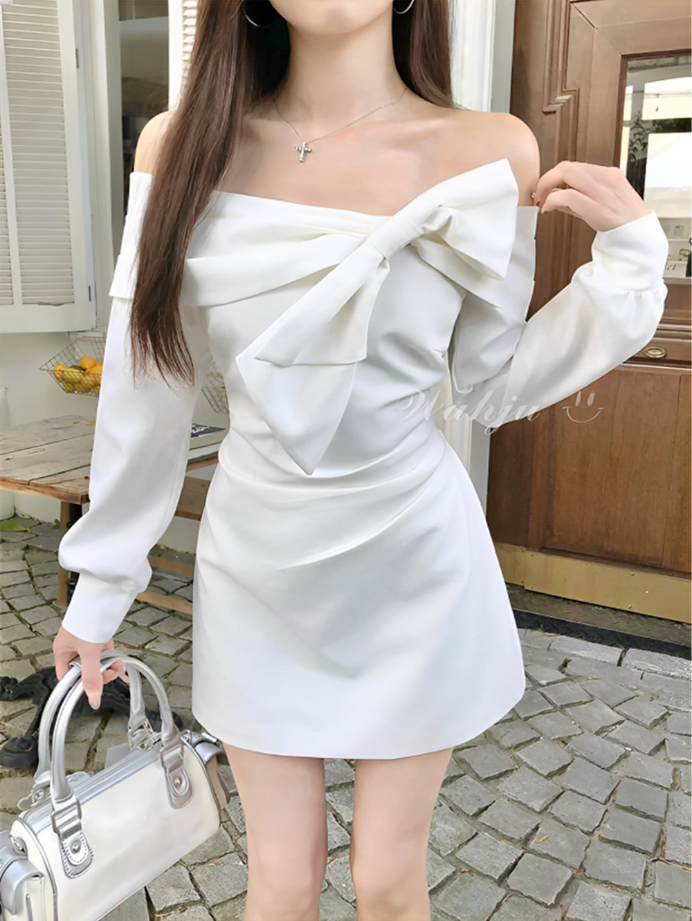 記憶に残るシーンで主役になれる「フロントビッグリボンキャミソールオフショルダーロングワンピース」をご体感ください♡