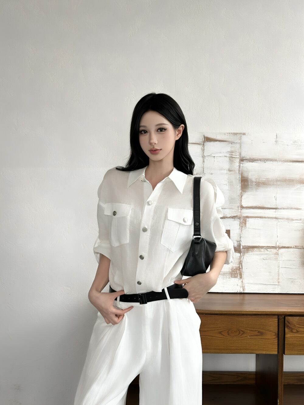 #大人カジュアル|ベルテッドホワイトオールインワンジャンプスーツは、きれいめカジュアルに決まるスタイリッシュアイテム。