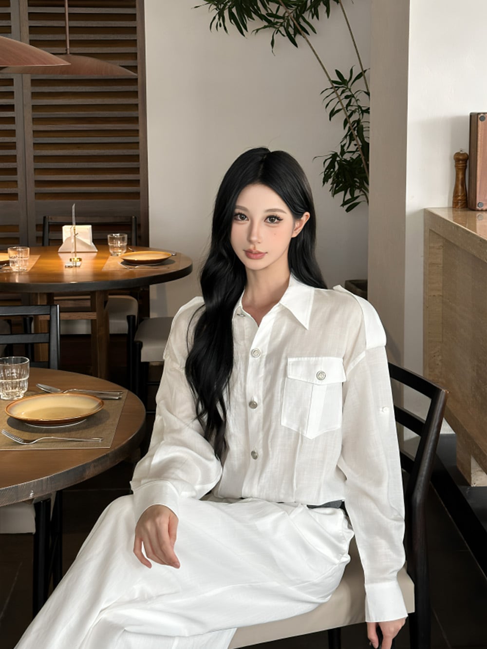 日光を味方につけ、上品な清潔感とヘルシーな抜け感を演出。