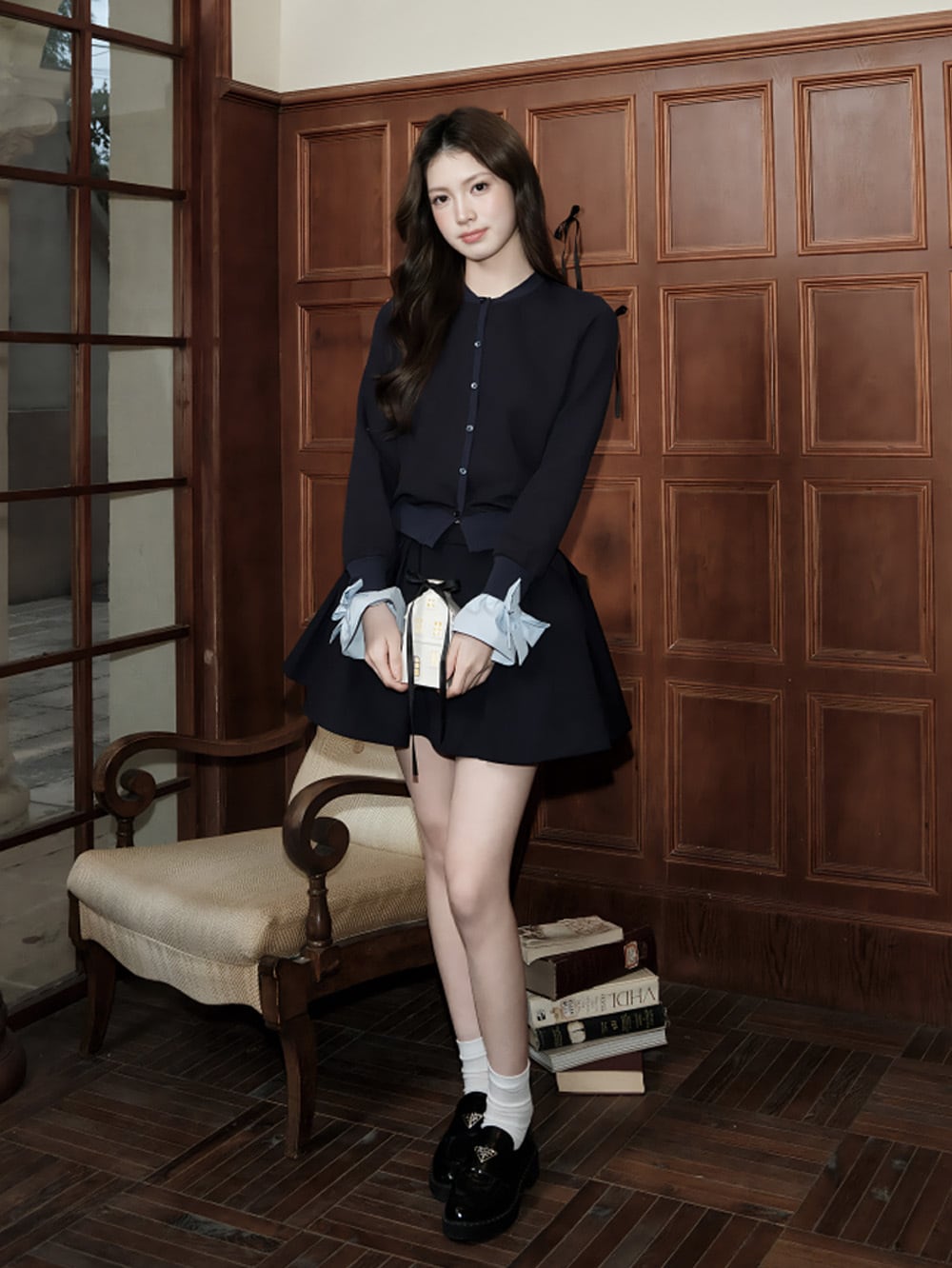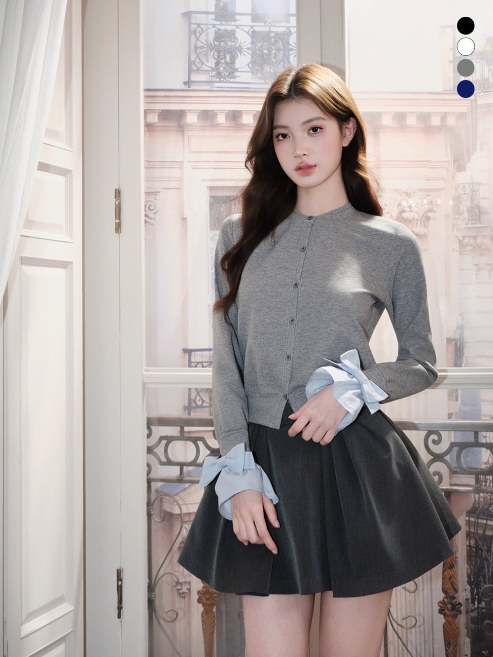 #Miu系穿搭|ヘムリボンロングスリーブニットトップス|AVENEMENT
