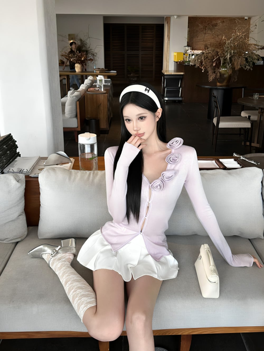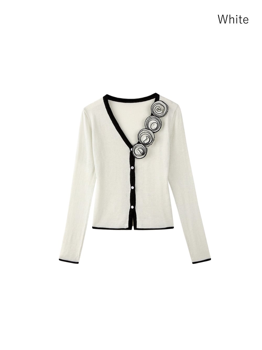上品なフラワーアイコンが、コーディネートに華やかさをプラス。