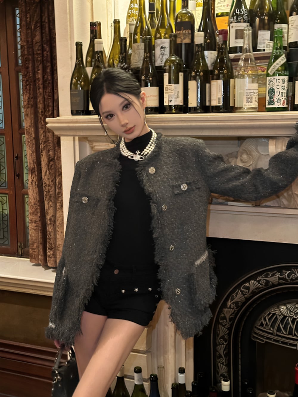 #財閥千金穿搭|リッチグレーフリンジツイードモチーフジャケット|Atelier Item