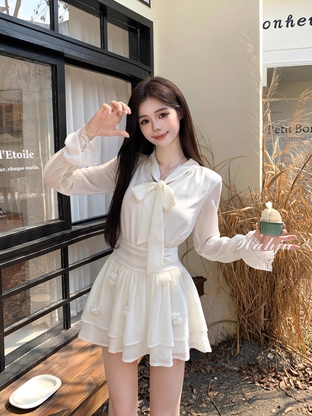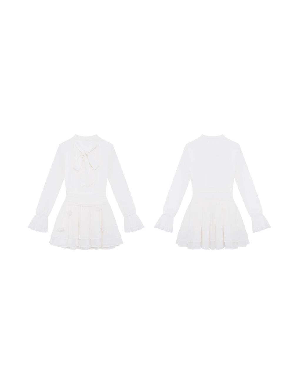 運命的な出会いを表現する「フラワーアセットボウタイアイボリーホワイトロングワンピース」をお楽しみください♡