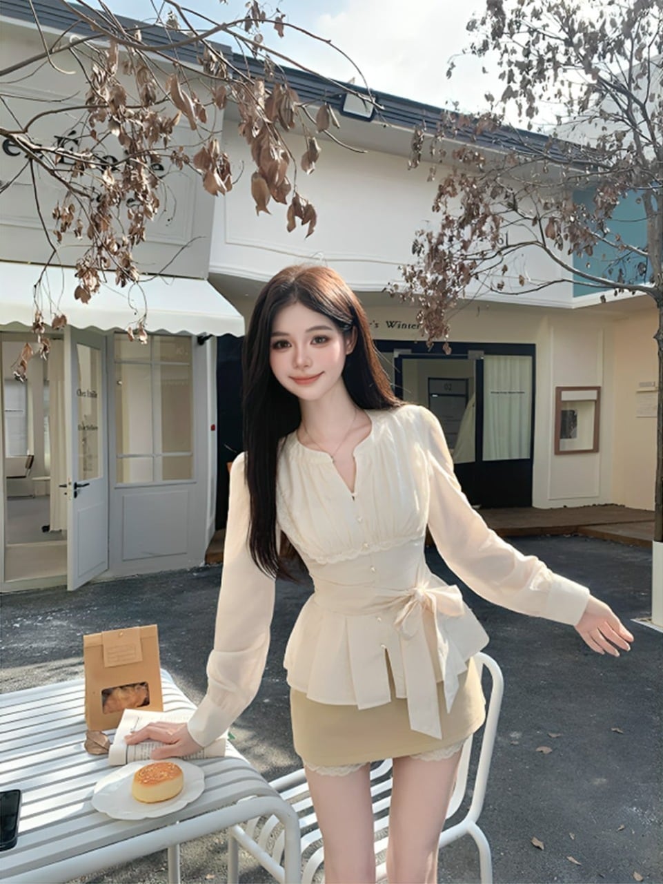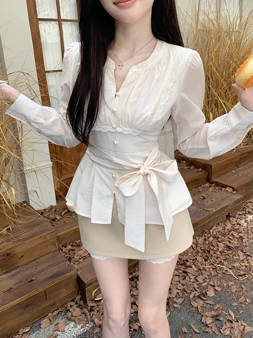 あなたを主役に導く「ウエストコードパールレーストップス+レースアピールミニスカートセットアップ」で特別な瞬間をお楽しみください♡