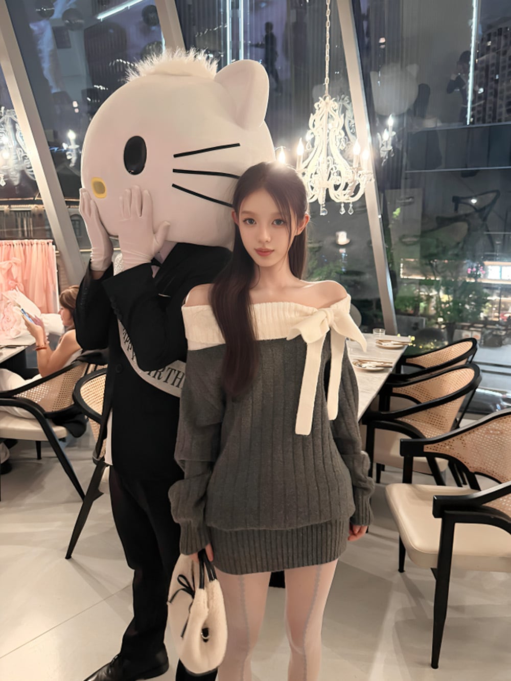 優雅さと自信を最高に高める「ホワイトショルダーリボンビッグシルエットニット」をお楽しみください♡
