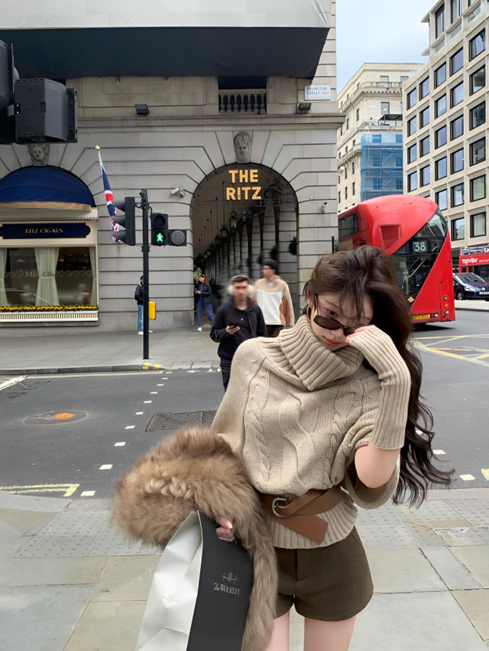 ゆったりとしたタートルネックが、顔周りを優しく包み込み、