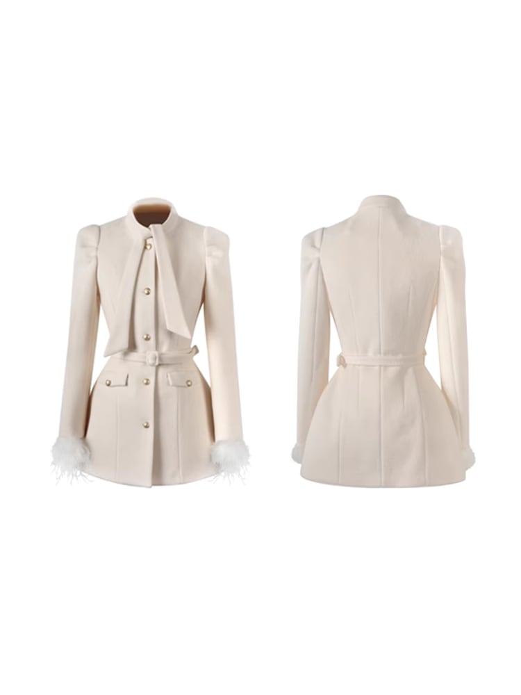 即日発送 アウトレット|フリンジスリーブベルテッドネックタイアウターミドルコート|Atelier Item