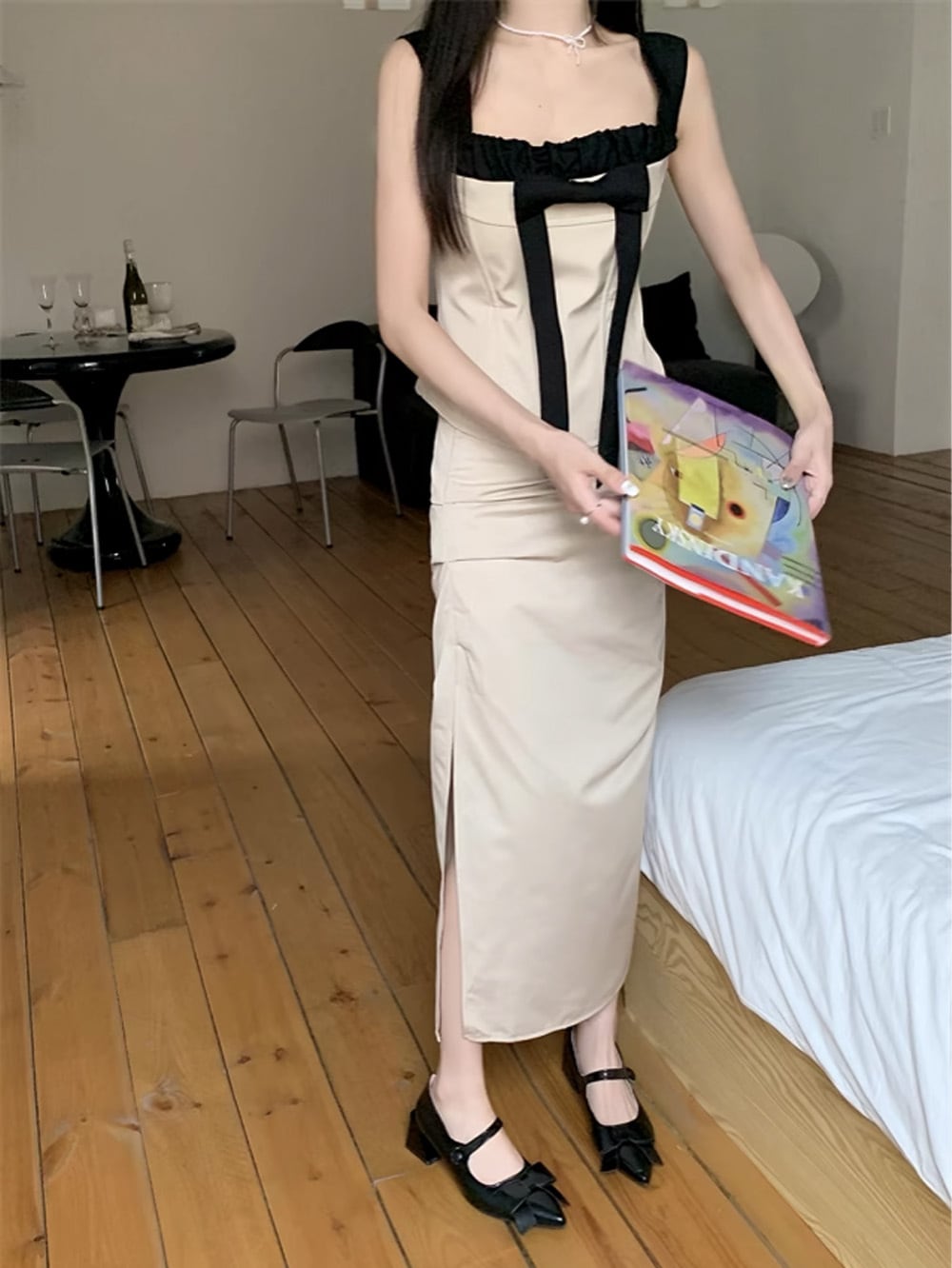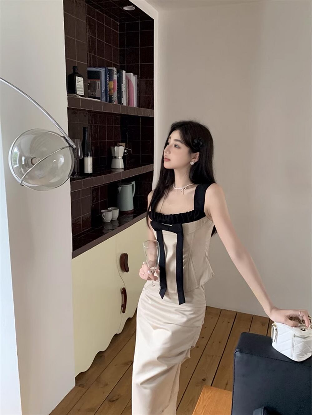 #きれいめ|クラッシーアイボリーキャミソール+スカートセットアップは、"どこを切り取っても美しい"絶妙なコントラストが映えるバイカラーが特徴のアイテム。