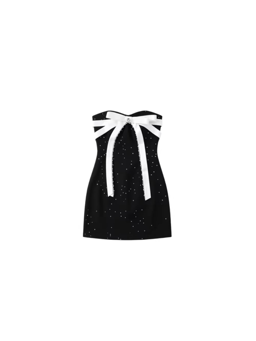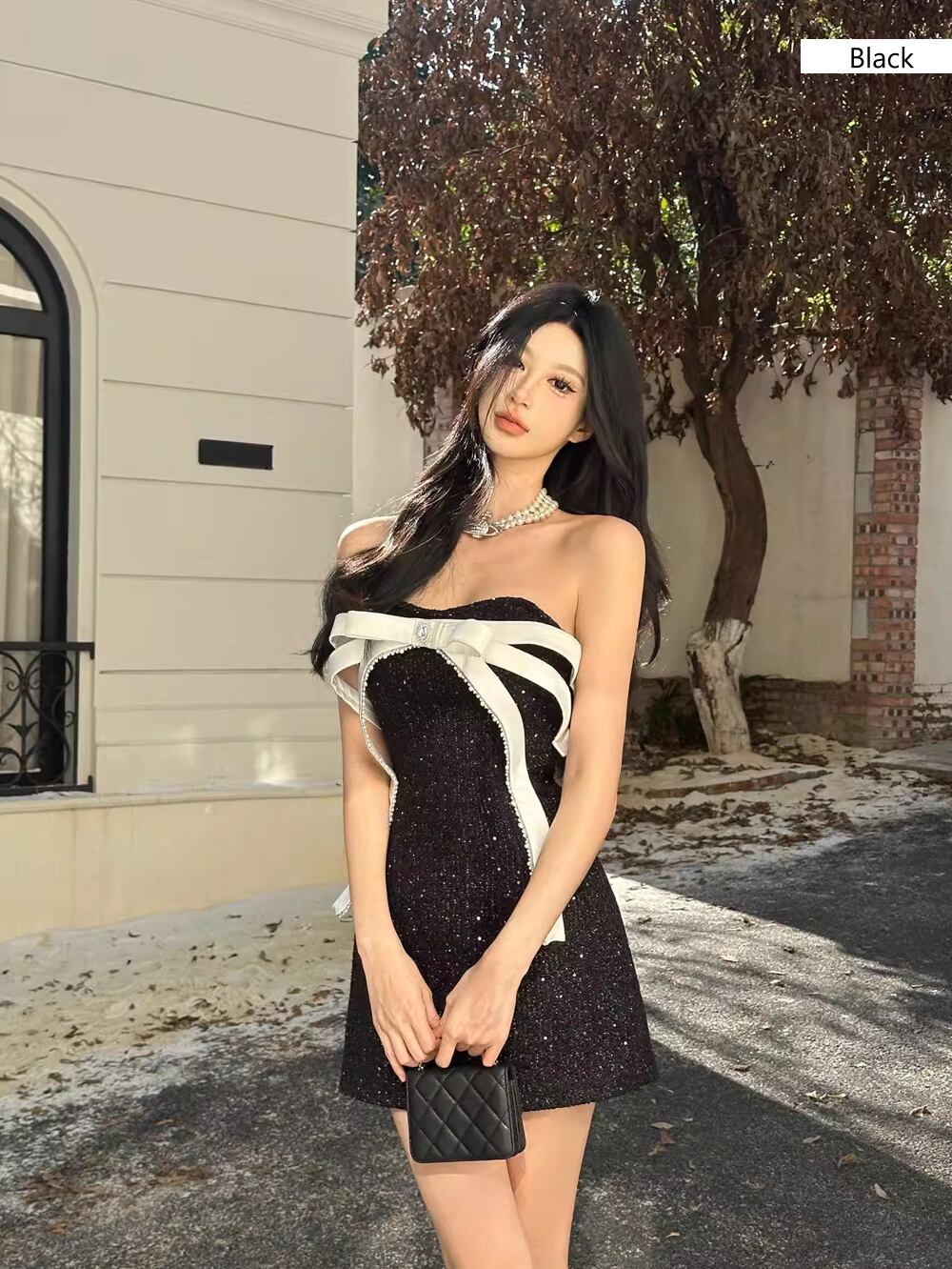 #お呼ばれワンピース|バインドリボンオフショルダーミニワンピース