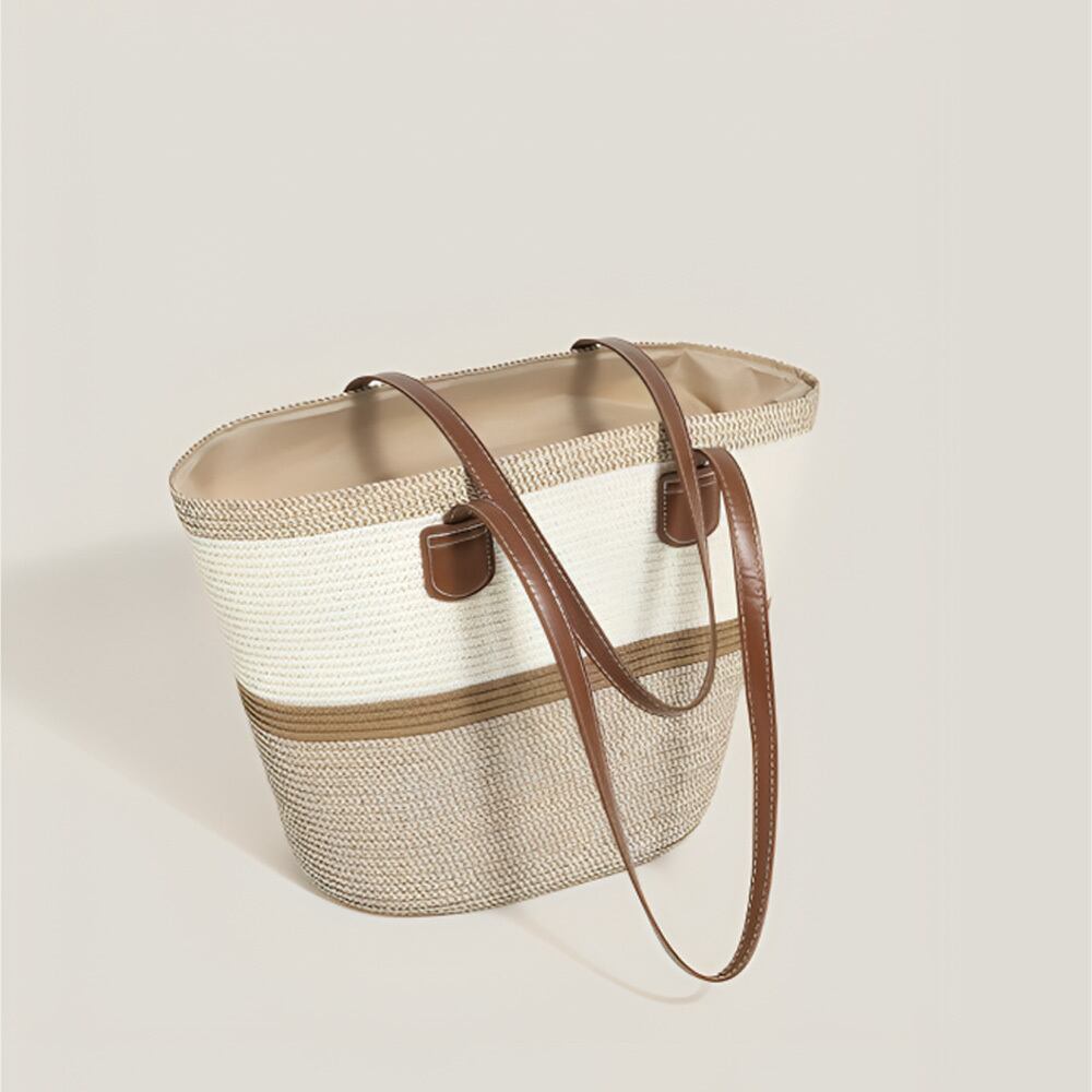 レザーハンドルカラーボーダーカゴトートバッグは、"大人カジュアルなおしゃれ"と"スタイリングの楽しさ"を融合させた魅力的なバッグアイテム。