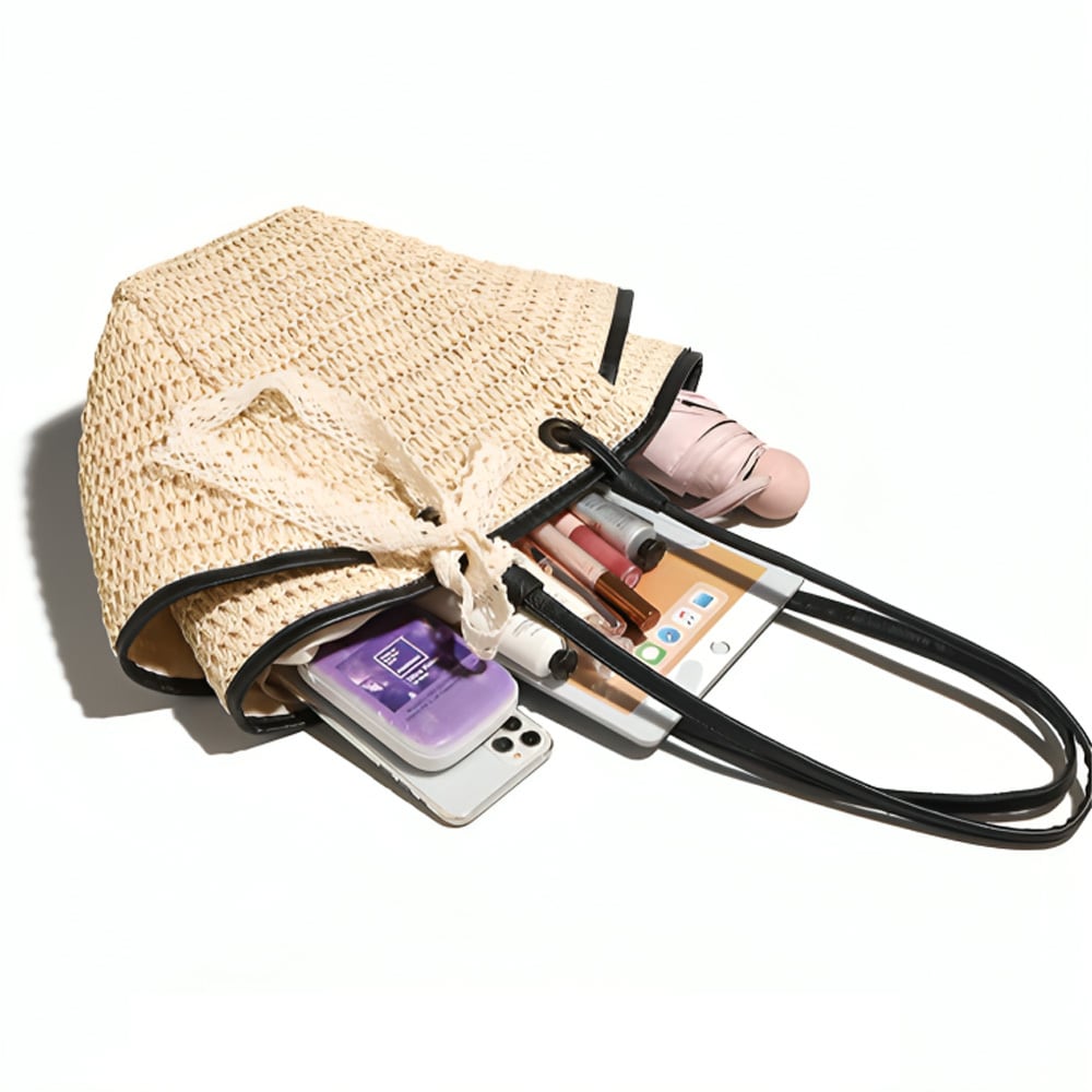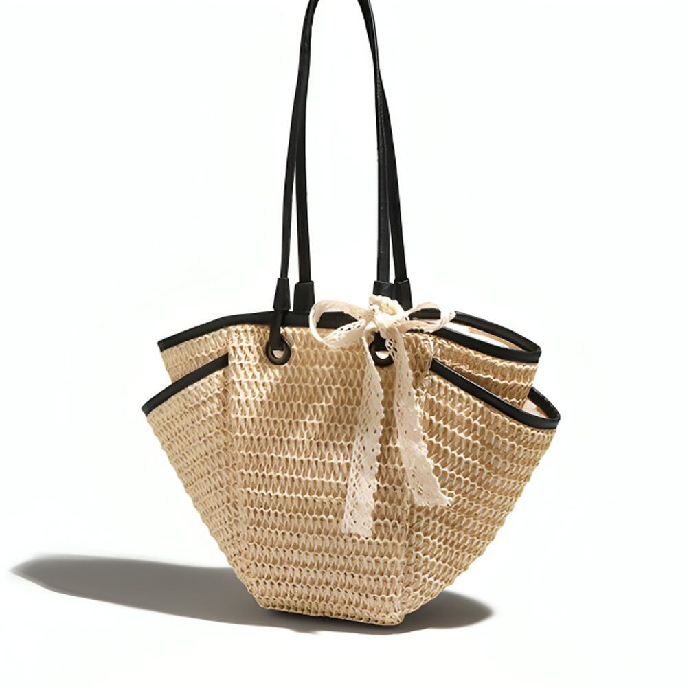 洗練されたブラックラインが施されたカゴ素材は、ナチュラルさとおしゃれさを融合させ、お気に入りのコーディネートに自然と溶け込みます。