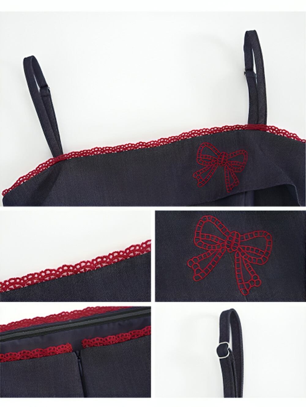 レッドリボンステッチドキャミソールワンピース