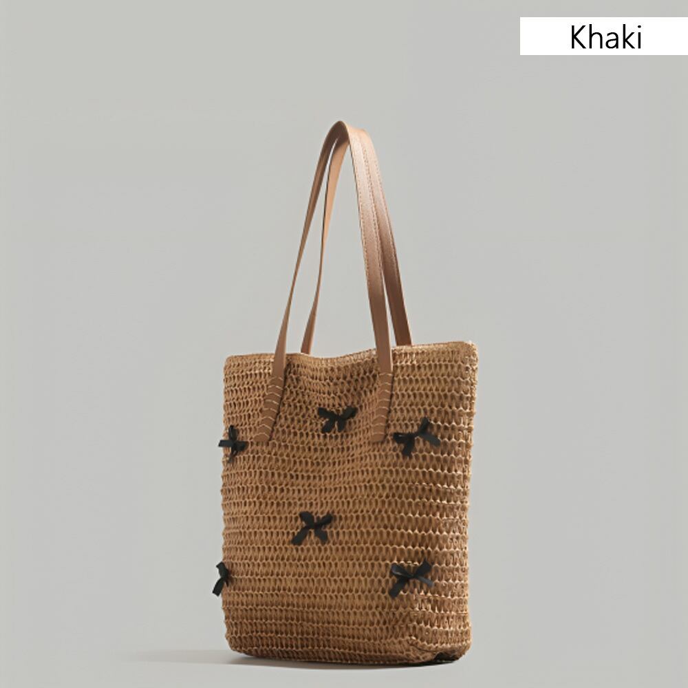 柔らかなカゴ素材にリボンがアクセントとなり、シンプルかつ大人可愛いデザインが日常のファッションに華やかさをプラス。