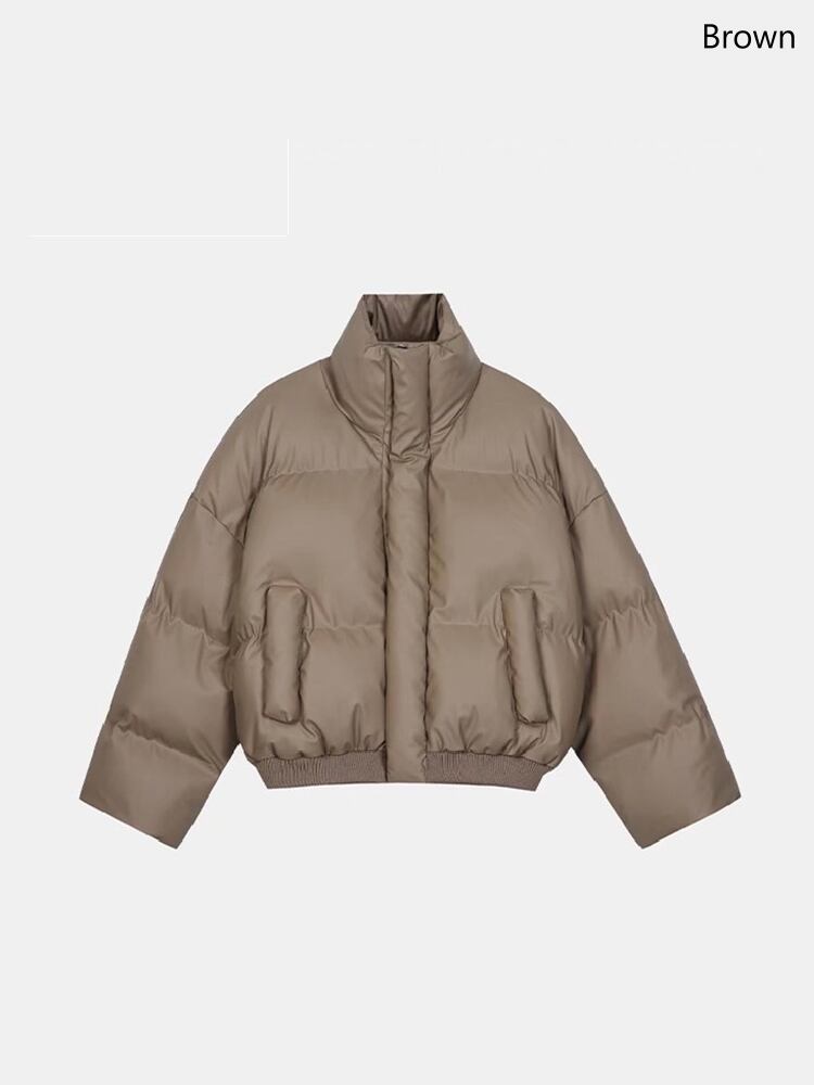 クロップドスムースダウンジャケットは、シンプルながらも洗練された印象を与えるダウンジャケットです。