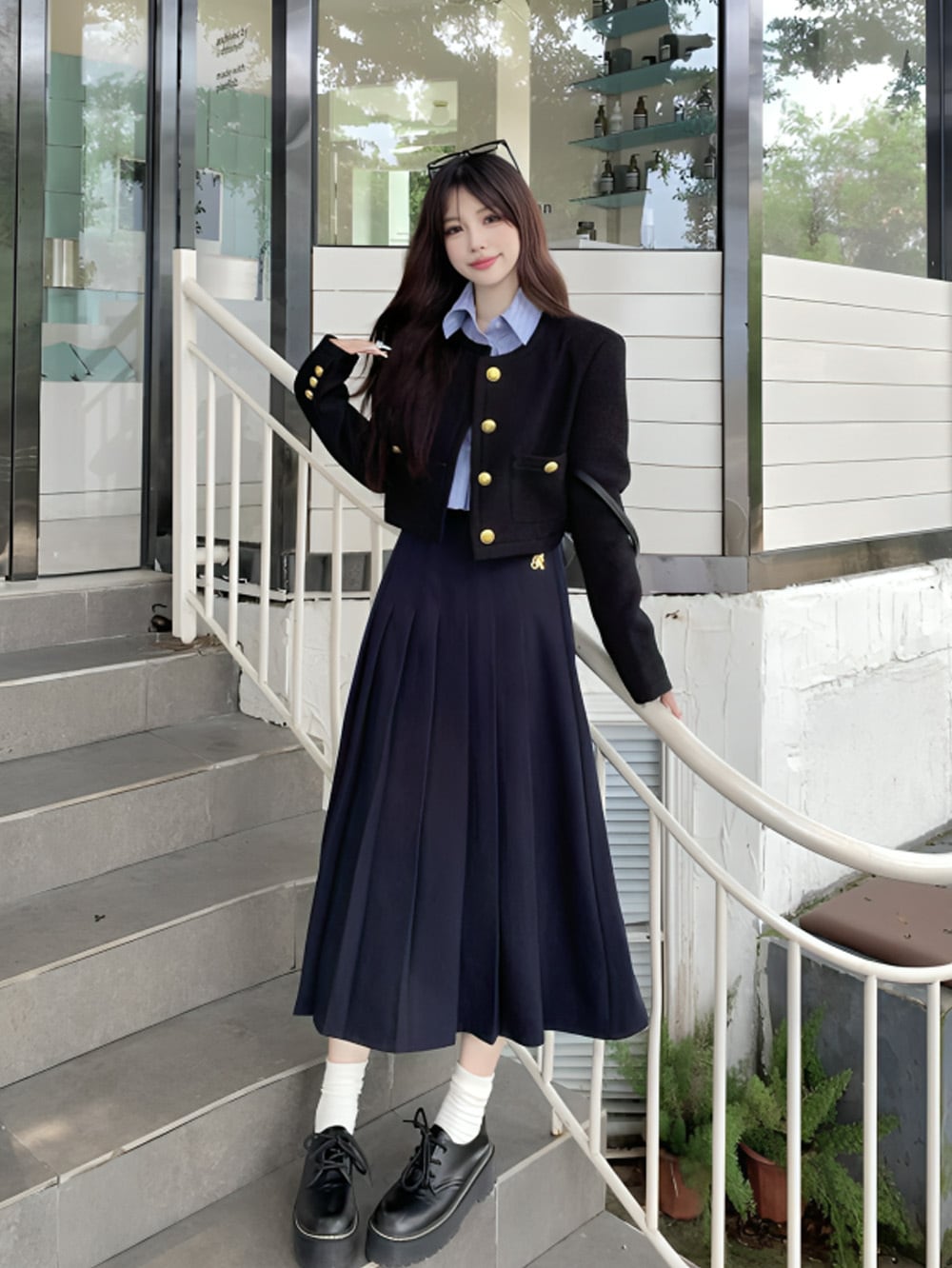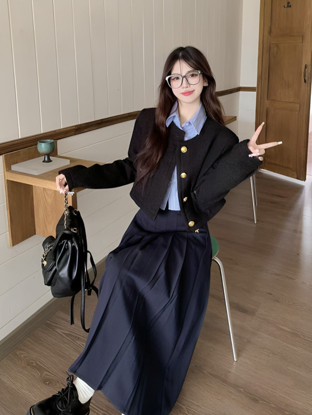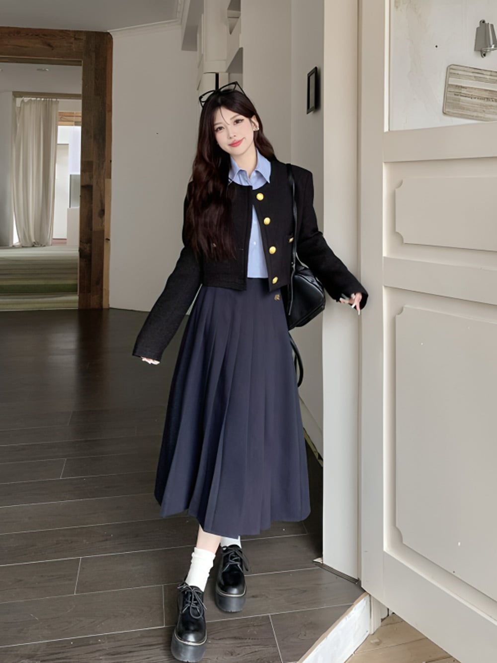きれいめカジュアルツイードジャケット&シャツ+スカートセットアップ