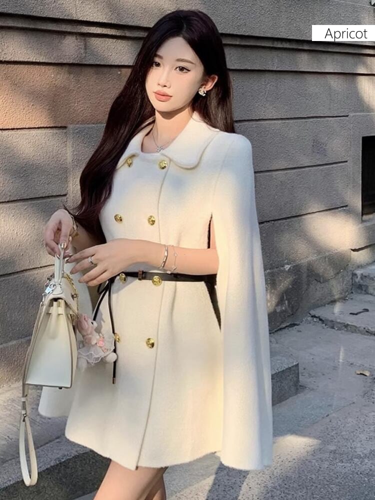 軽やかな素材を使用し、流れるようなシルエットが特徴のケープポンチョスタイルは、多様なシーンで美しい印象を与えてくれます。