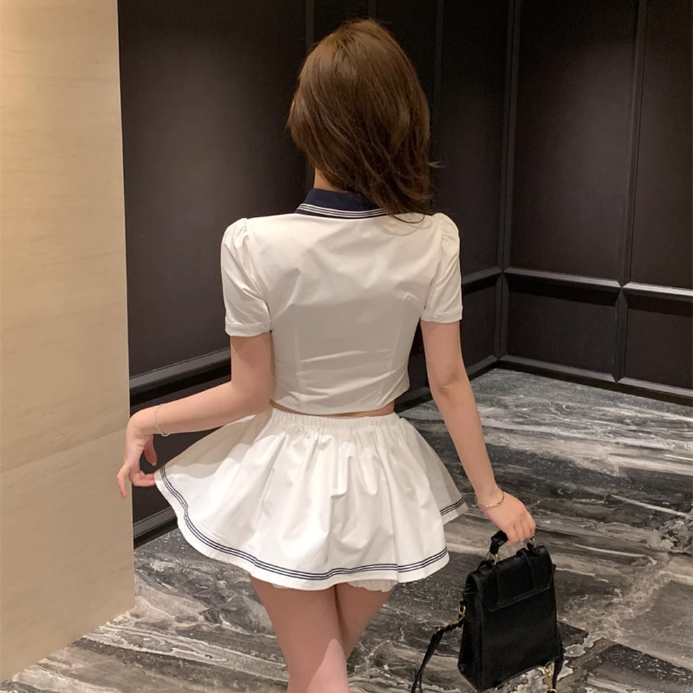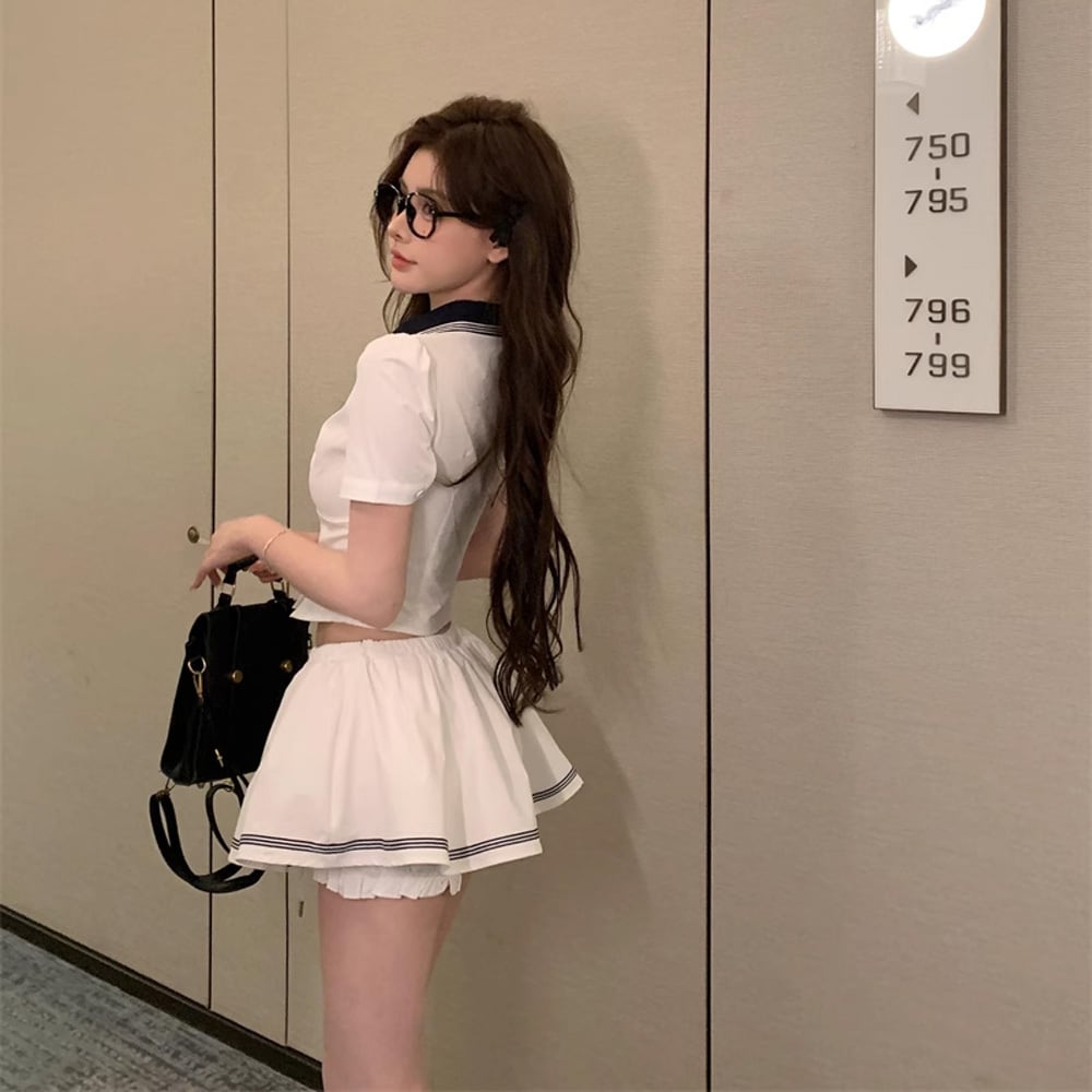 セイラーテイストセパレートセットアップは、"シンプルでありながら大人可愛い"デザインが魅力のファッションアイテム。