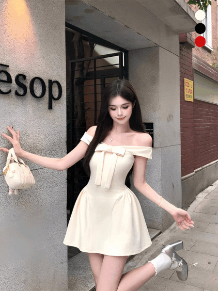 "心躍る大人可愛いスタイル"そんなフレーズがぴったりな、2wayフロントリボンオフショルダーキャミソールワンピースをお楽しみください♡