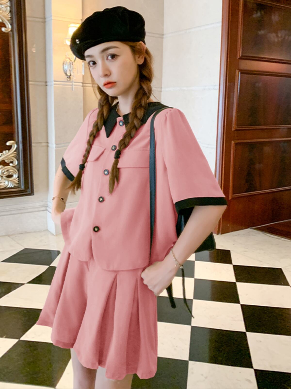 L:トップス→着丈49/胸囲102/肩幅38/袖丈27、ボトムス→着丈44/ウエスト82-92