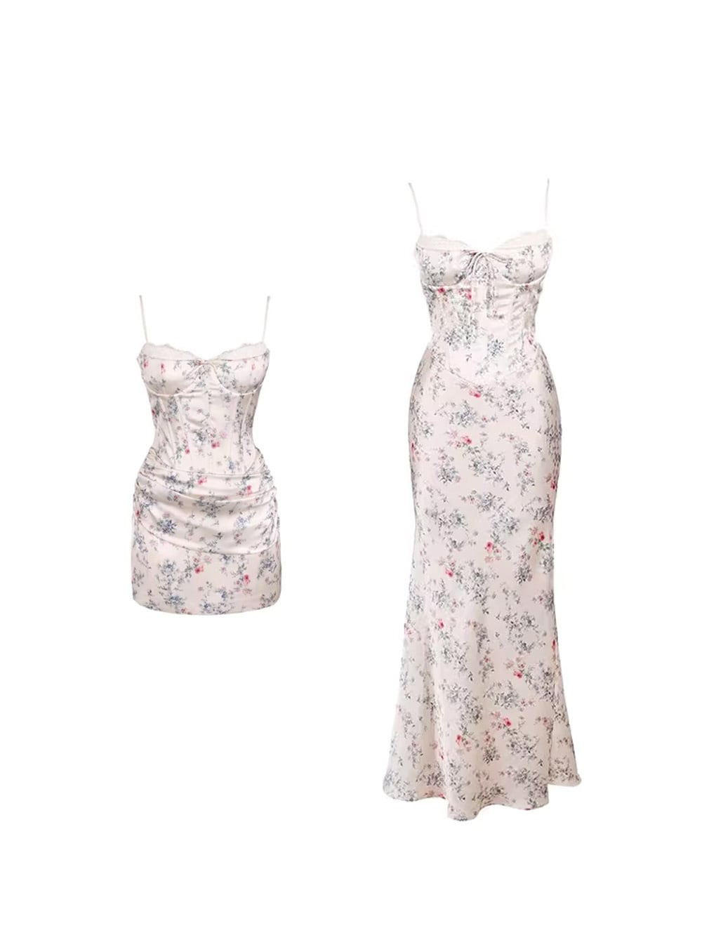 ラベンダーモノグラムレースキャミソールミニ&ロングワンピース