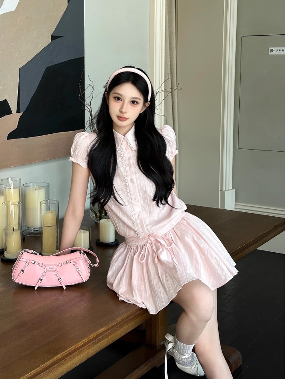 淡いピンクとリッチグレーが描くのは、やわらかいだけじゃないニュアンス。